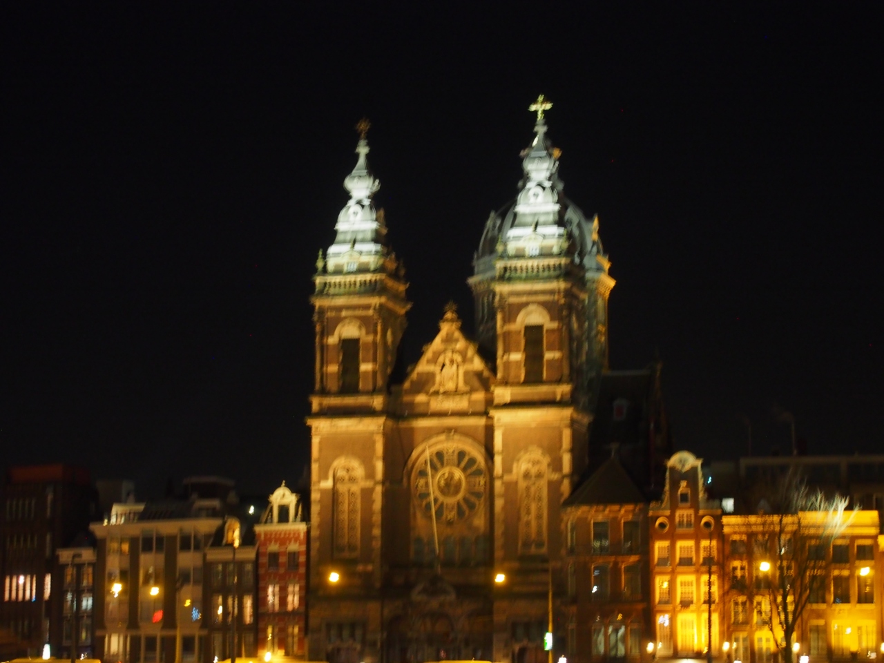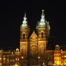 アムステルダム中央駅の南東にある教会です。駅の前に出るとすぐ目の前に見えます。アムステルダムでは新しい教会で、1887年の建設された教会です。聖ニコラスは5世紀の現在のトルコ出身の聖人で、航海、漁業などに携わる人たちの守護聖人です。アムステルダムは海の交易で栄えている街なので、聖ニコラス教会がこちらにあるのも納得です。夜にはきれいにライトアップされています。