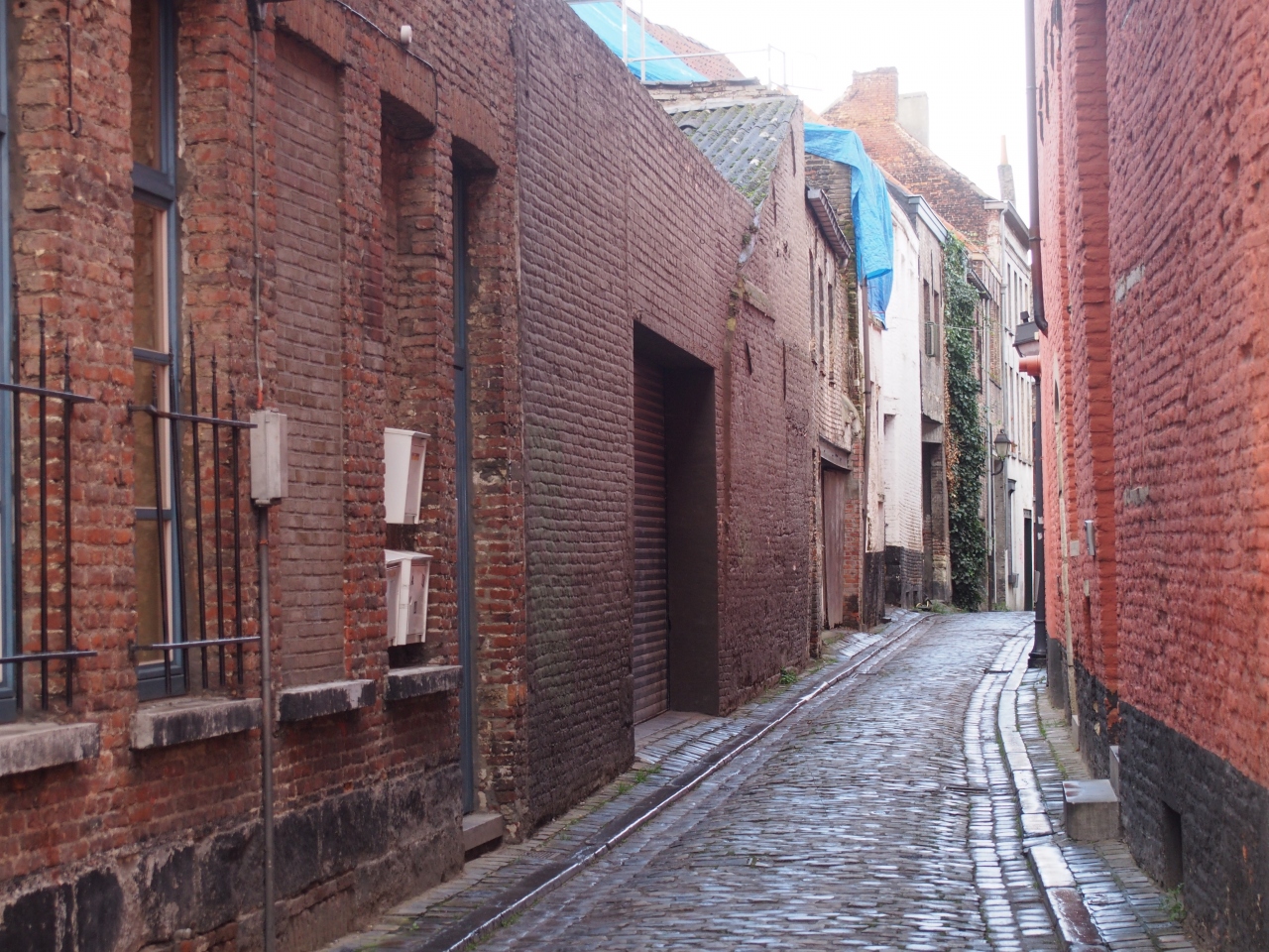 旧魚市場、聖ヴェーレ広場のすぐ近くのレイエ川沿いの家並がクラーンレイです。コーンレイ、グラスレイなどにある大きな商家、ギルトハウスに比べて、こちらは小さめの個人の住居(それでも富裕な商人の家)が中心となって並んでいます。狭い川沿いに切妻屋根の家並が続き、観光客も減り、落ち着いた雰囲気があります。