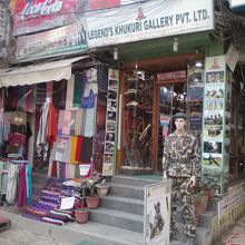 タメルのほぼ中心にありますがいたって普通の交差点です。旅行者エリアなのでタクシーやリキシャ、露天のみやげ物屋、流しの楽器売りなどからよく声をかけられますがそれほどしつこくありません。夜はまた別の声をかけられますのでご注意を…。一つ気面白い店がありました。表に迷彩服を着たマネキンのあるナイフ屋。実際に買っても持ち帰るのが面倒そうですが男子ならきっとそそられると思います。店内のディスプレイは圧巻の一言です。せび覗いてみて下さい。