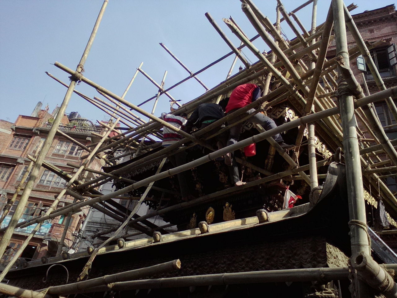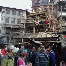 旧市街の賑やかなアサンチョークに建つ3つ屋根のかわいらしい寺院。お参りする人が絶えない皆に親しまれている寺院でもあります。足場が組まれていたので地震の被害の修復か思いましたがどうもただのペンキ塗りのようでした。アサンチョークと合わせてカトマンズのマストスポットだと思います。