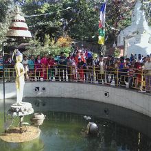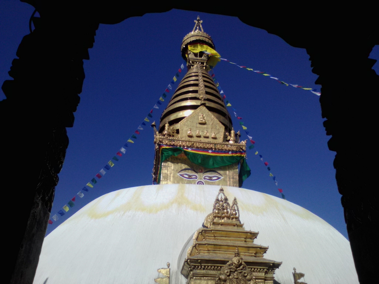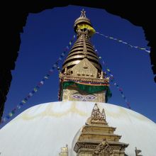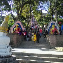 現在の入場料は外国人200Rs。カトマンズ市街側から正面参道である階段を登っていくと最後にチケットカウンターがあり外国人だけ“選別”され徴収されます。ちなみにネパール人はフリーパス、無料です。しかし駐車場のある裏側から登るとチケットカウンターはなく普通に入れます。正面参道から山を1/4ほど南に回りこむと登る階段があります。“裏側”には小さなストゥーパやコインを投げ入れる池などがありネパール人で大変賑わっています。もちろん正面から登っても裏側に下れますのでぜひ…。