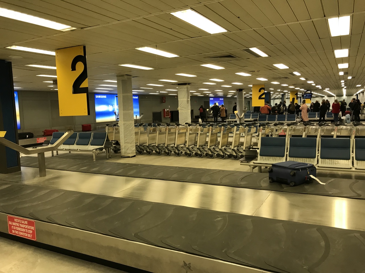 すごくコンパクトな空港で、預け荷物はトイレに行っている間にはすべて出てきていました。