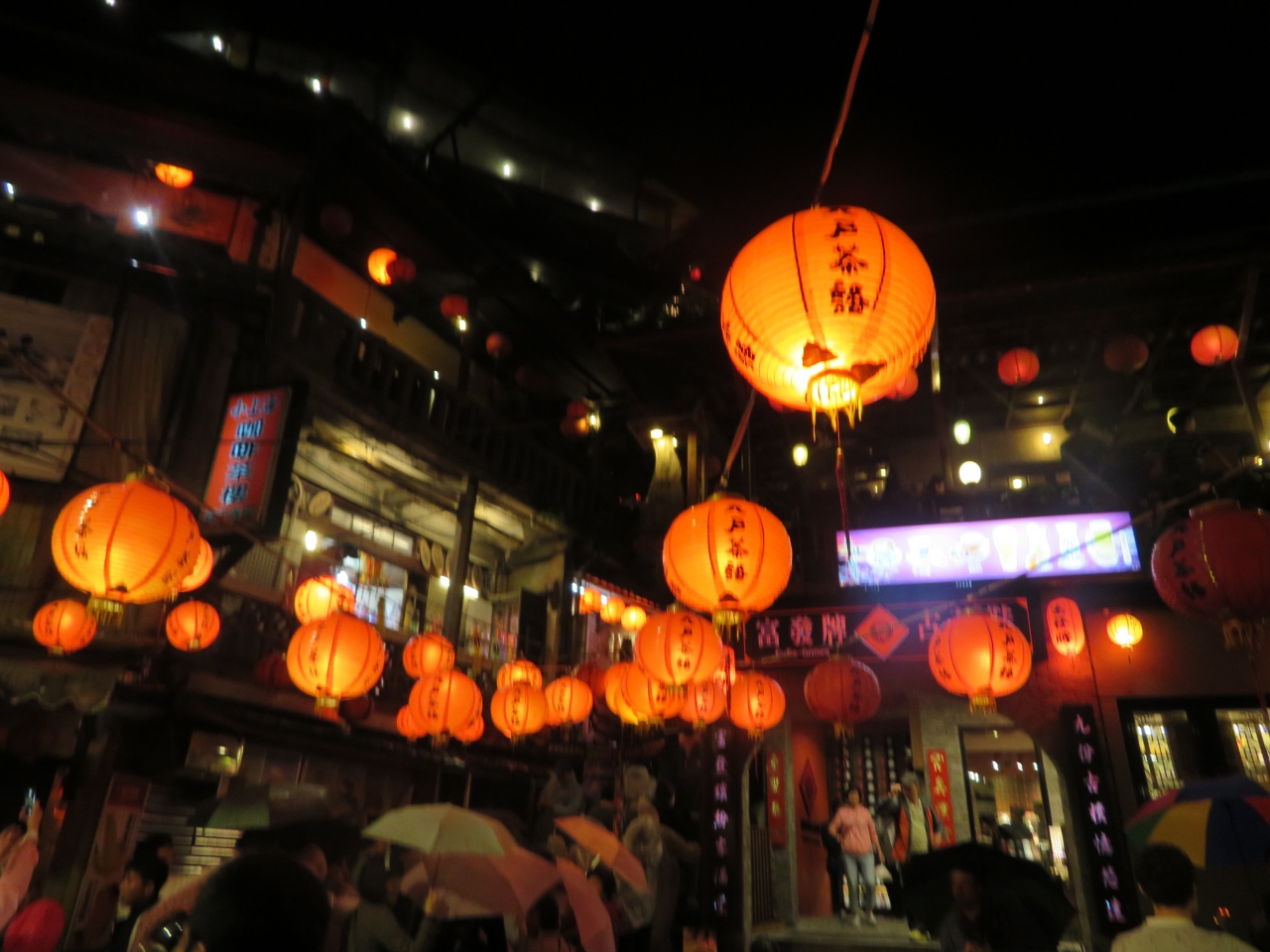九份を代表する通りが基山街と豎崎路、どちらも狭いが豎崎路は長く急な階段なので歩くのが大変です、それに夕方からは人が多くて歩くのに時間がかかりました、道の両側には昔ながらの情緒あるお店が並んでいます、千と千尋の神隠しの雰囲気があり、夜は赤い提灯が素敵です、行ったのが日曜日でしたのでゆっくり見ることが出来ませんでした、今度は平日の昼間に来たいです。