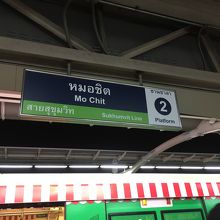 BTSの始発駅でMRTのブルーラインに乗り換えることができます。BTSからMRTに乗り換えるには一度外に出ます。駅の周辺はどちらかというと自然が多く、ローカルのバス停がたくさんありました。タクシーもいます。