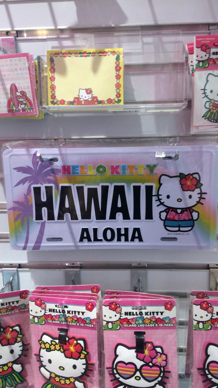ハワイは虹のナンバープレートが可愛いのですが、キティーちゃんとコラボした物が売っていました。