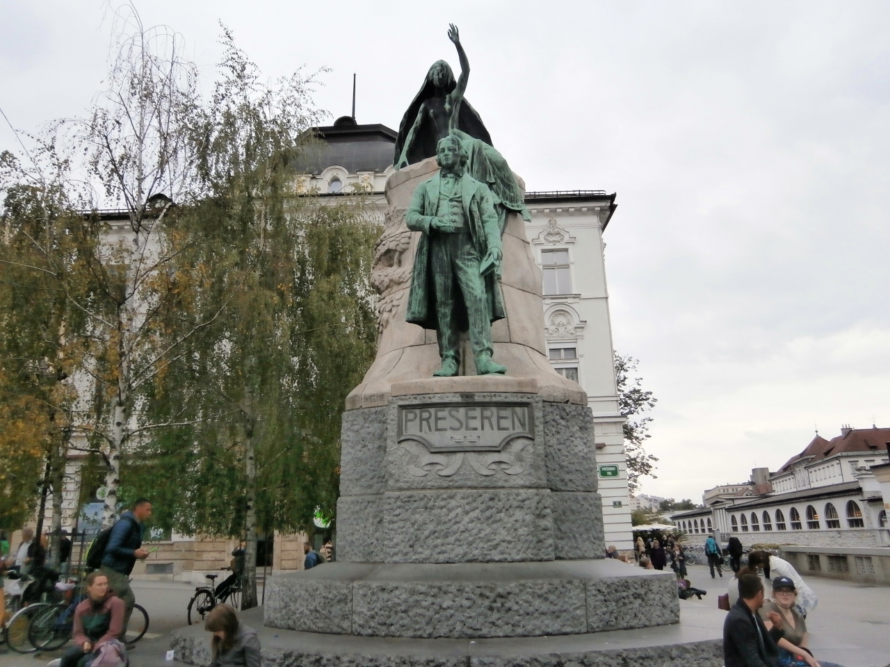 広場の名前の由来でもあるフランツェ・プレシェーレンの像が立っていました。スロベニアの国民的詩人で国歌の作詞者でもあるそうです。