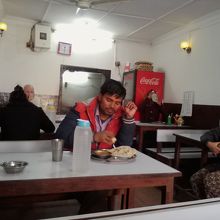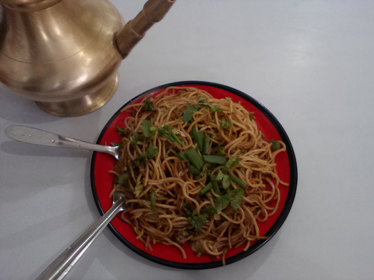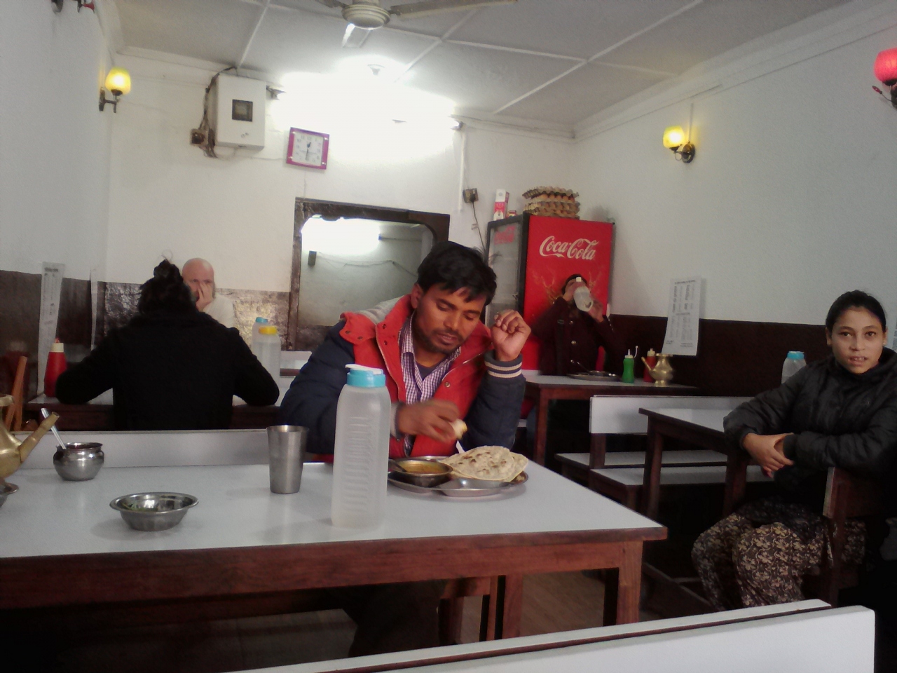 ラトナパークの北東角にある歩道橋から東に伸びるいたって普通の商店街。その中にいいレストランを発見しました。歩道橋から100mほど歩いた右手。名前は「スーパー・ルンビニ・レストラン」。ですが看板表記はネパール語のみ、入口にあるタンドリー釜が目印です。メニューはタンドリーロティ1枚10Rs、アルーマター40Rs、ミックスベジ60Rs、ベジダルバート120Rs、ベジチョウメン60Rsなどどれも激安です。で、ベジチョウメンハーフ40Rsをオーダー、ネギとパクチーが上にかけられていてなかなかおいしかったです。シメにチヤ20Rs。2品でたったの60Rsです。宿から少し遠くても来る価値はあるんじゃないでしょうか。