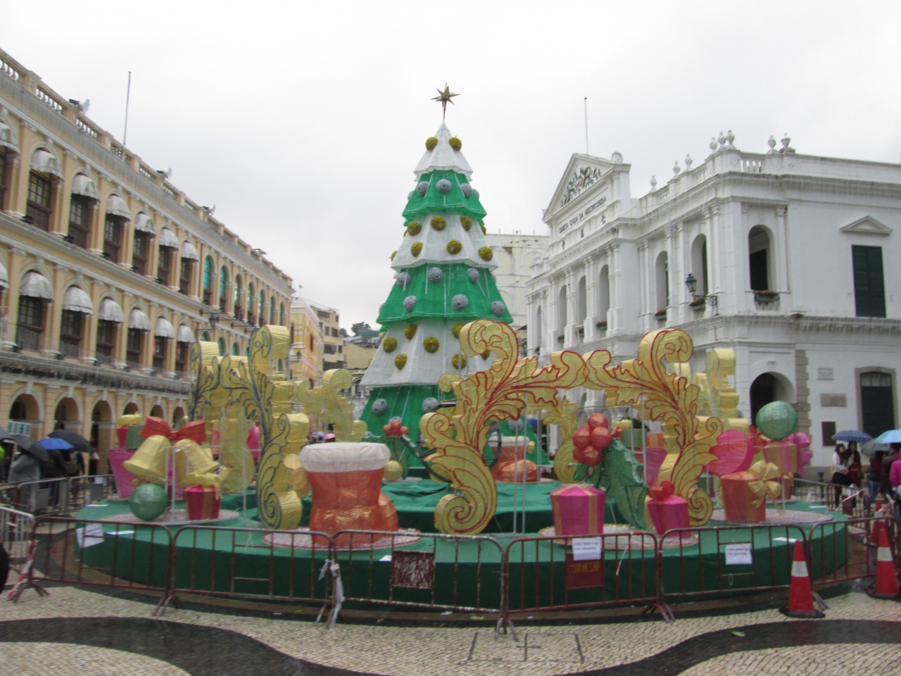 クリスマスの時期にセナド広場に訪問しました。広場の中央には大きいクリスマスツリーが飾られ、周囲にはクリスマスのデコレーションが施されていました。きれいな飾りであったので思わず記念撮影をしてみました。マカオでもクリスマスは特別なイベントのようでした。
