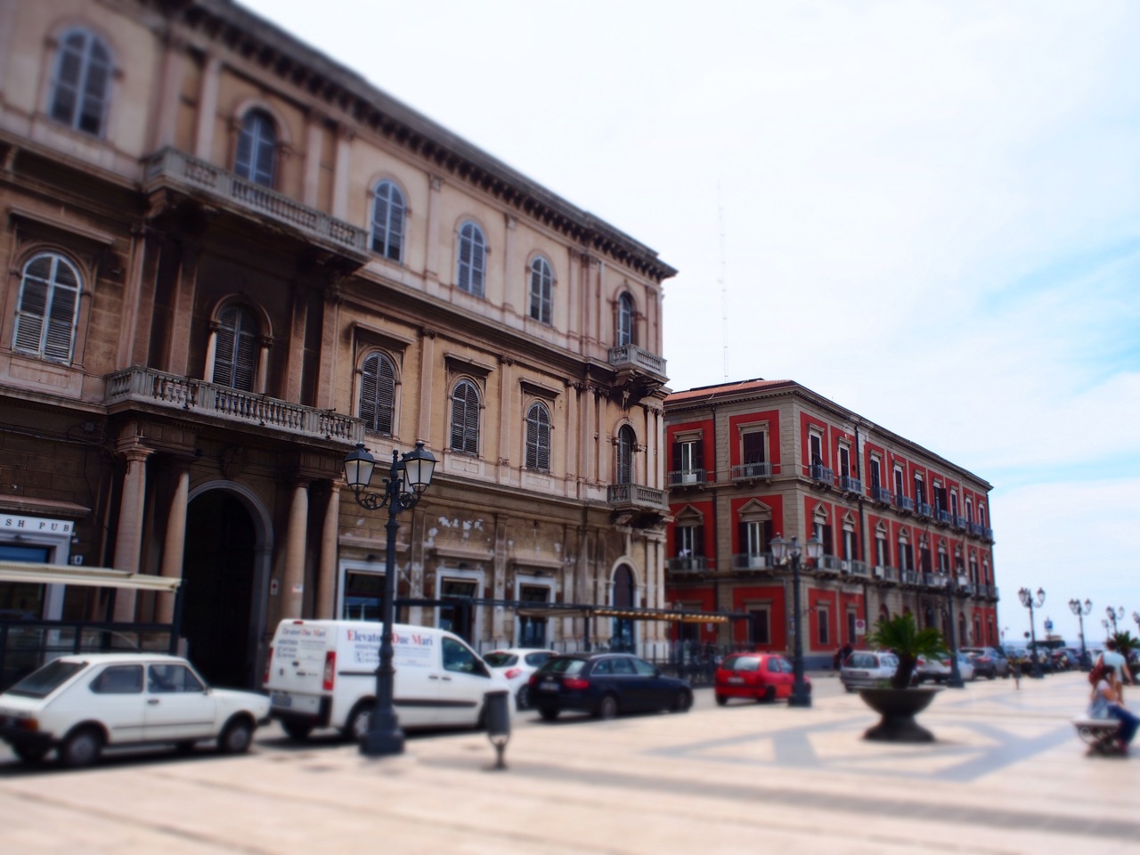 ターラントの新市街と旧市街を結ぶ橋。跳ね橋ですが、年に数回、海軍の船が通るときだけしか動かさないようです。海の色がとてもきれいで美しく、みとれるほどの絶景ですが、交通量が多いので、わたるのに注意が必要です。