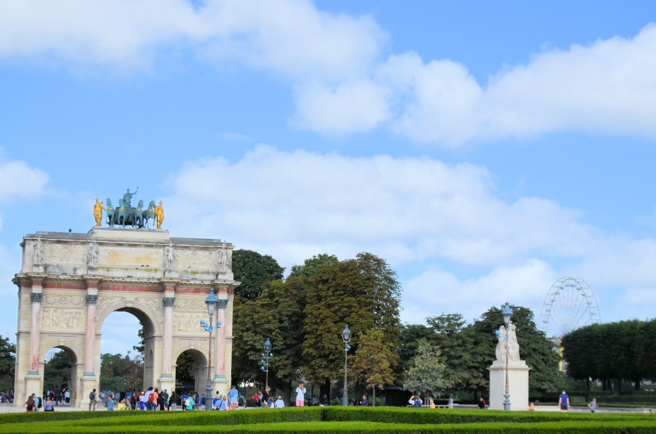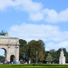 ルーブル美術館の裏側の入り口を出た場所にキャルーゼル凱旋門とキャルーゼル像がある。凱旋門と比べると見劣りし、ルーブル美術館の圧倒的な存在感にまったく目立たないのが残念。ルーブル美術館とセットで見るとよいと思うが、わざわざ凱旋門だけを見に行くほどではない
