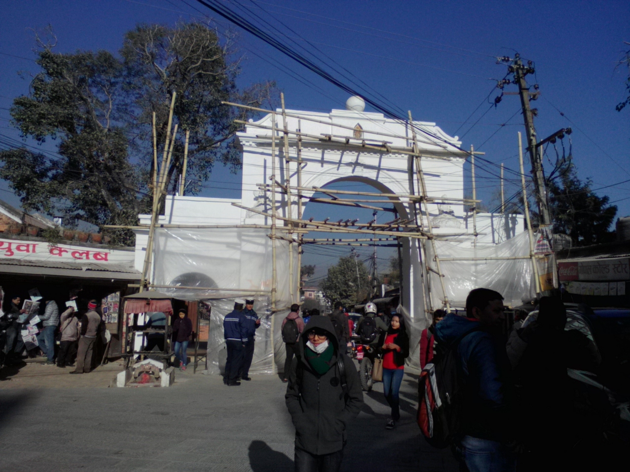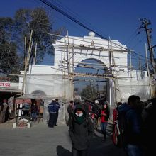 パタンの街の入口にあたるのがパタンゲート。残念ながら足場が組まれ塗装中でした。ゲートの周辺には商店が集まりなかなか賑やか。チャイや軽食を出す食堂も何軒かあるのでパタン観光の前に腹ごしらえもできます。以前はゲートを過ぎたところにチケットカウンターがありましたが現在はありませんのでそのままダルバール広場へ行けます。