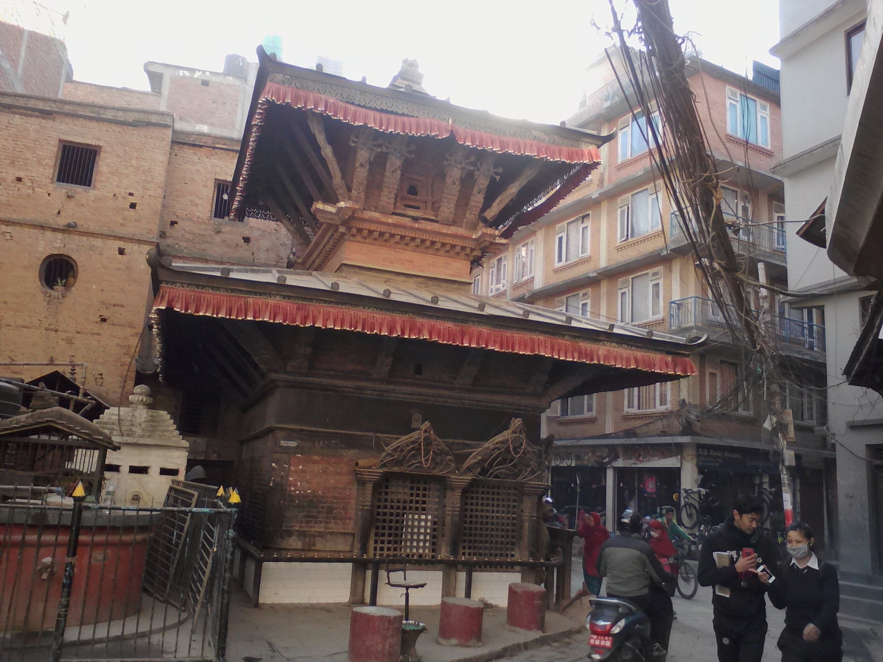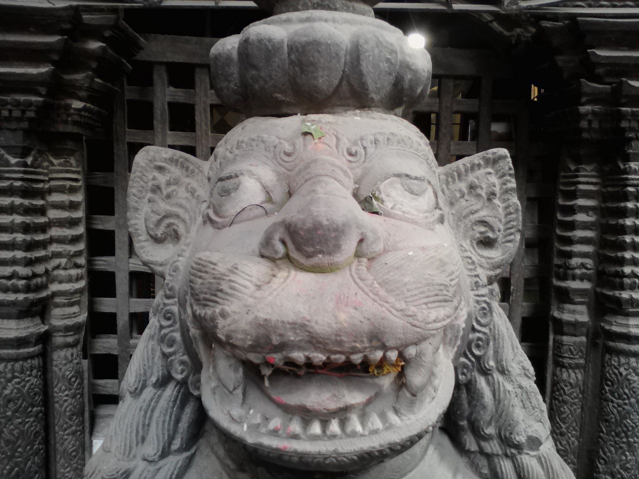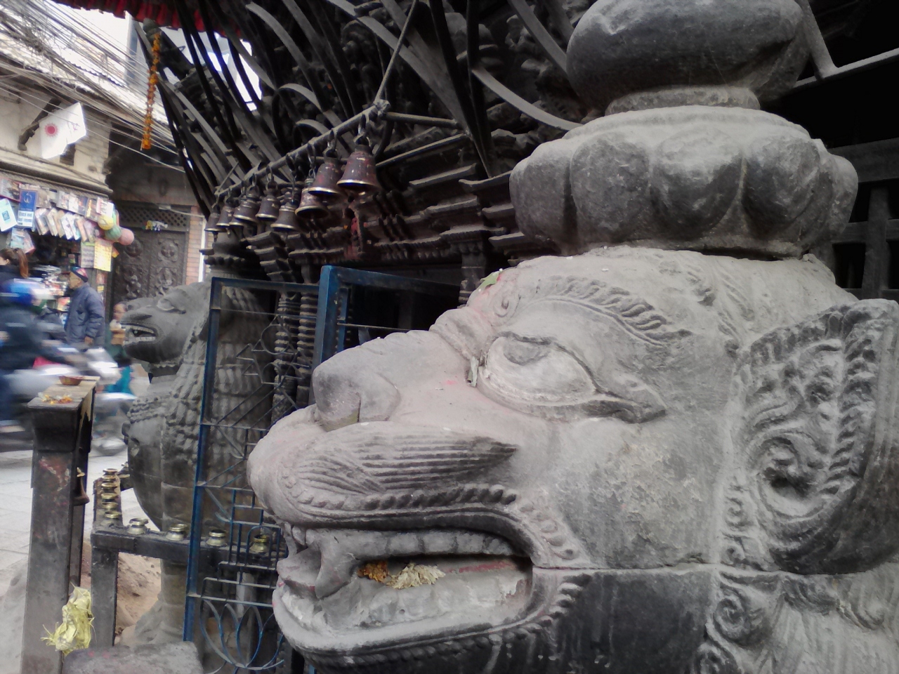 パタンゲートをくぐってしばらく進むとあります。ガネーシャが祀られてるいたって普通の寺院ですがやはり目を引くのは入口両脇に構える一対の獅子像。上目を向いて口は半開き、どことなくユーモラスな表情です。おもわずアイ〜〜ン!と叫びたくなってしまいました(実際は叫んでいませんので…)。