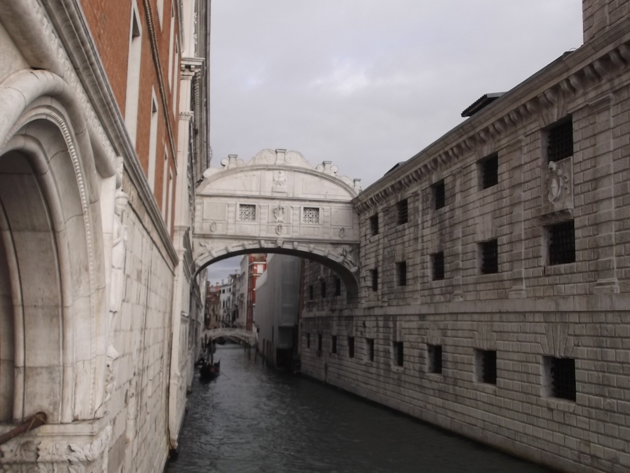 ドゥカーレ宮殿と牢獄の間の川にかかる橋。 囚人達が、この橋を渡るともう戻れないとため息をついた、とかの言い伝えがあります。