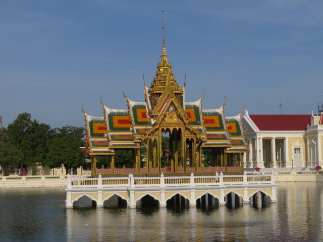 タイの観光で最初にアユタヤのバーンパイン離宮に行きました、17世紀アユタヤ王朝のプラサート・トーン王によって建築された夏の避暑用離宮で広大な庭園に大きな池やタイ風建築のブラティナン・アイサワンティップアートやホーウィトゥンタサナなど建物があります、広い散策路沿いにはお花が咲いているので見ながら歩きました、歩くのが大変な人には電動カートがあります、入口付近には売店・飲食コーナーがありお土産が買えます。