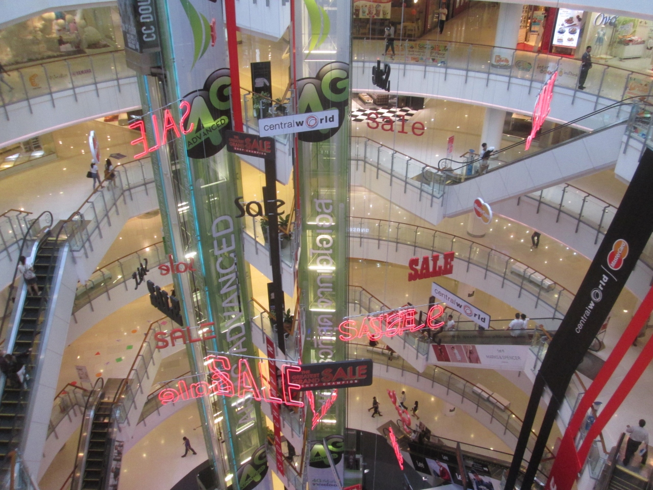 セントラル ワールドのなかは吹き抜けの構造で、テナントはハイブランドから庶民的なファストファッション店が入っていました。観光客向けの土産店や民芸店を扱っているお店があり、各ショップとも品揃えとしてはまずまずでした。