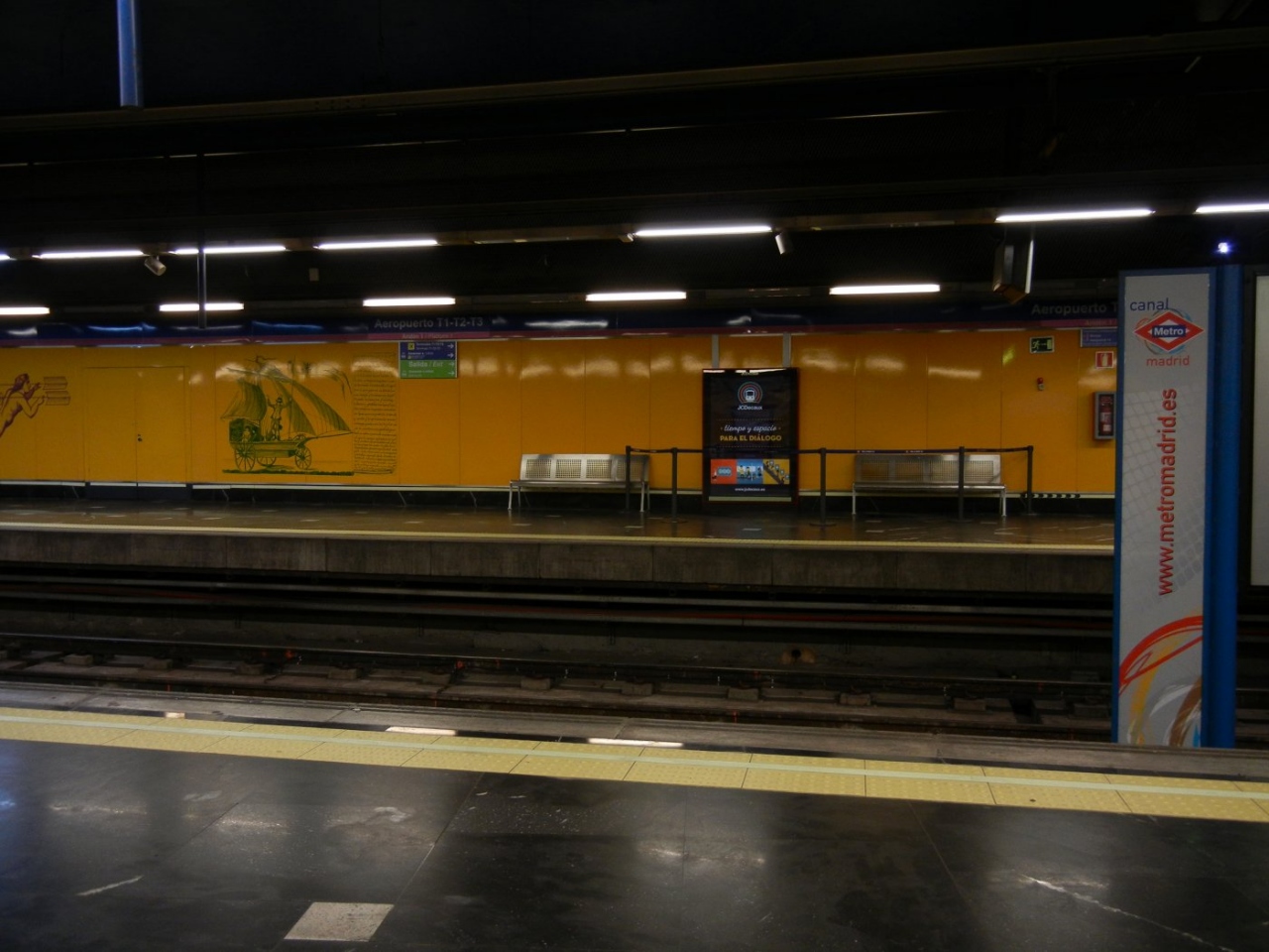 マドリードの空の玄関口。僕は行きも帰りもイベリア航空ではなかったので、空港ターミナル2の発着。空港は地下鉄8号線が連絡しているが、市街へ行くには途中2回乗換が必要だった。しかも乗換駅のヌエボス・ミニステリオス駅はホーム間移動が長いし階段が多いし、あまりおすすめできない。