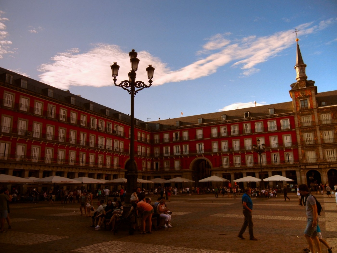 王宮とプエルタ・デル・ソルとの間にある広場。南北90m,東西120mの巨大な広場で、赤い4階建ての建物で囲まれている。飲食店やおみやげ屋が充実しているが、あまりいいにおいではない。広場中央にはフェリペ3世の騎馬像が立っている。パリのバンドーム広場とかローマのナボーナ広場のように、有名だけど「まあこんなものか」という広場。