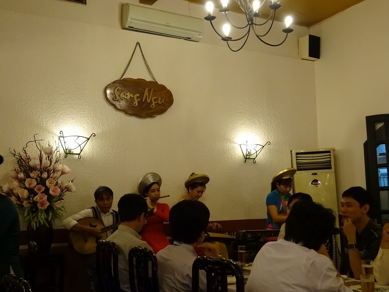 ホーチミンで有名な海鮮料理店と聞いてディナーで訪れました。店内は、それほど広くはありませんが、伝統楽器の生演奏が流れる落ち着いた雰囲気でした。また客層の1/3は、日本人のビジネスマンや観光客だったと思います。揚げ春巻き、貝の酒蒸し、酔っ払い海老、海鮮鍋などをいただきました。どれも臭みも癖もなく、美味しかったです。