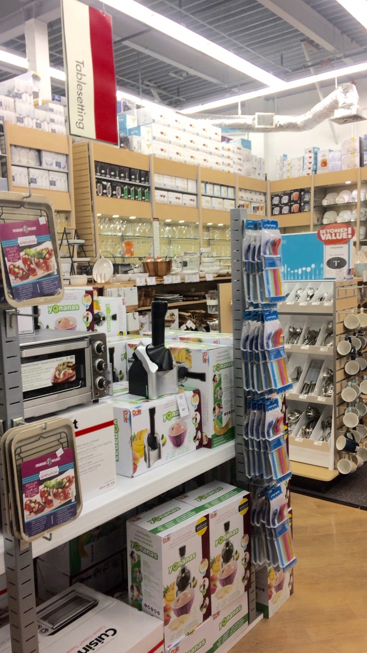 広い店内にフォークやスプーンやマグカップからアイスクリームメーカー、オーブンレンジなどのキッチン用品が揃っています。