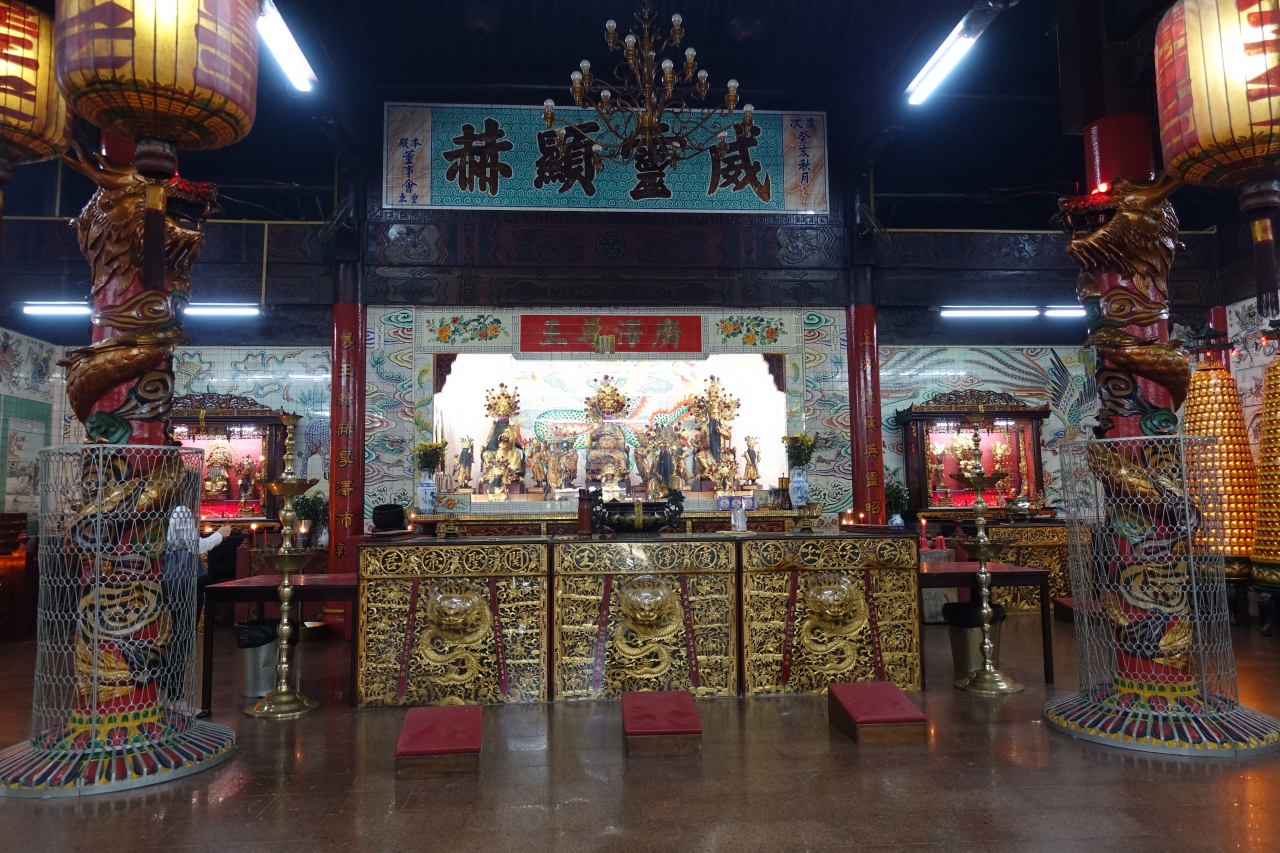 内部は神様の像があり、お線香が焚かれ、漢字でいろいろなことが書かれている。