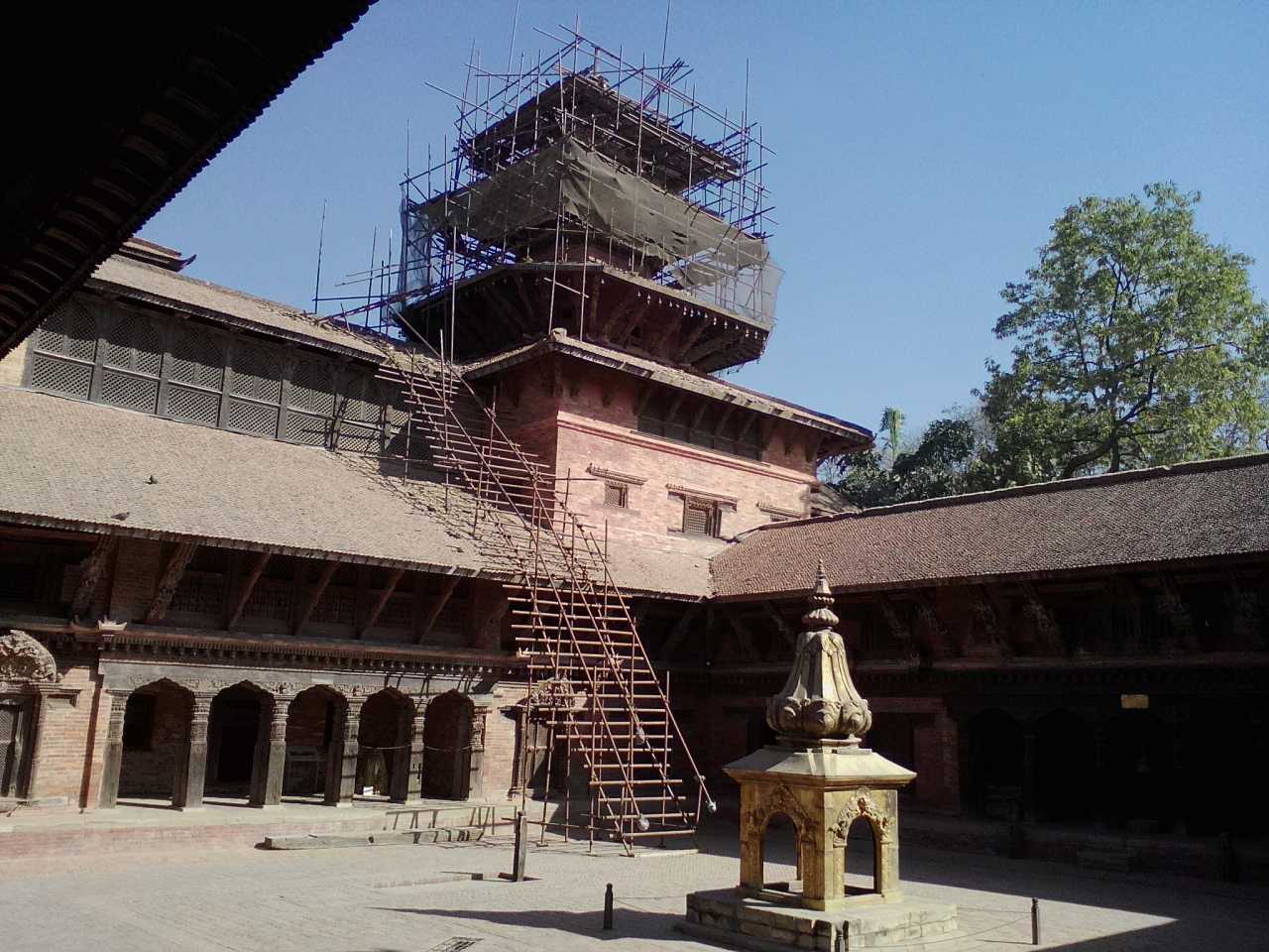 旧王宮内のムルチョークにある変則八角形の屋根を持つ寺院。2015年の地震で大きな被害を受けており現在は足場が組まれ修復中です。この寺院には王家の守り神としてのタレジュが祀られており、秋に行われるダサイン祭りではムルチョークで水牛やヤギが生け贄として捧げられます。