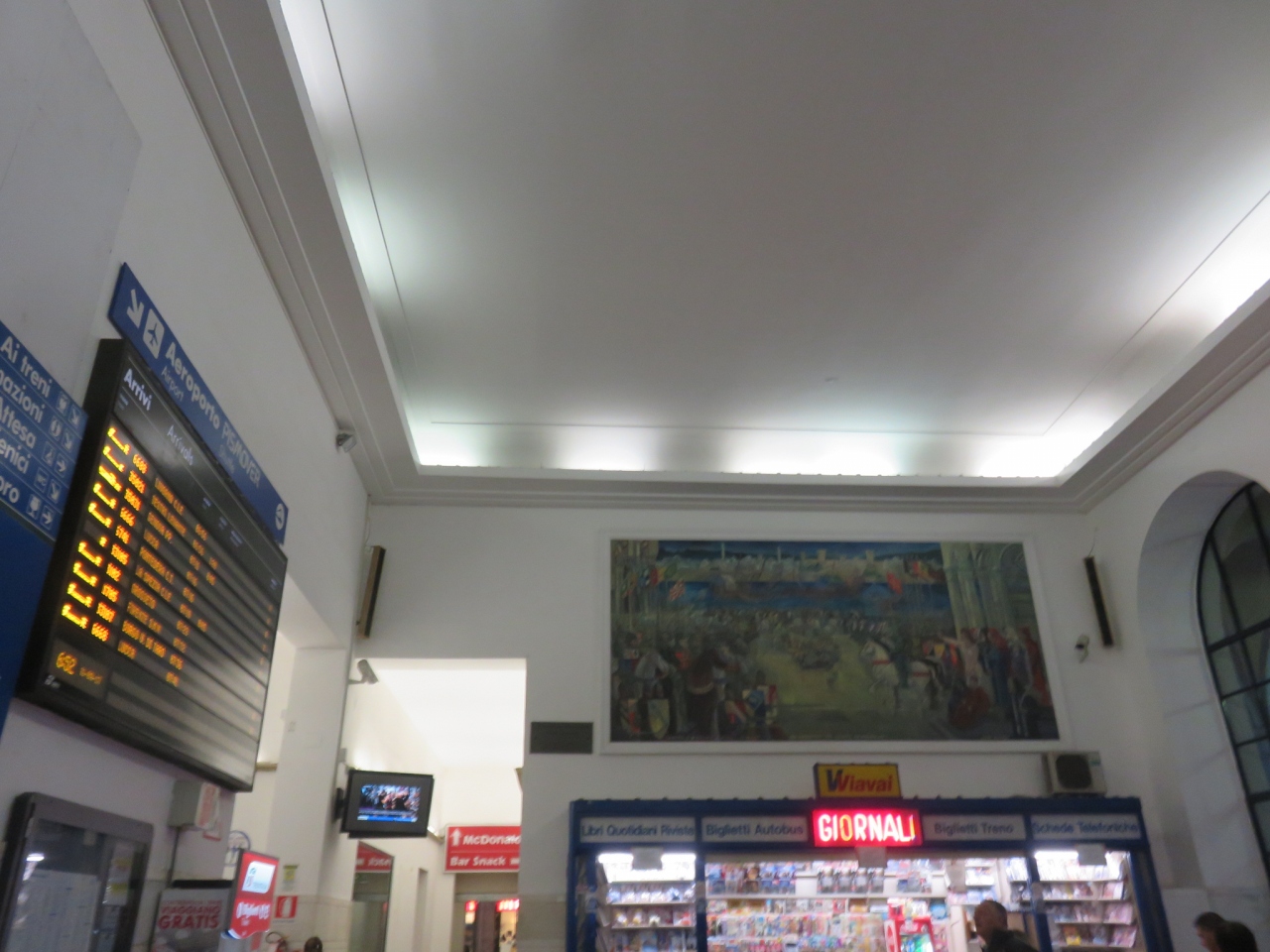 所がピサ駅のコンコースが豪雨で水没していて、利用出来るホームの階段・エレベーターが最後尾しかなくて大混雑。