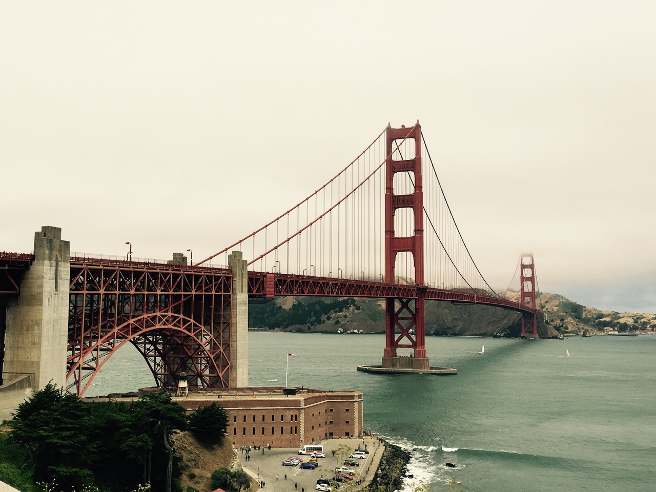 ゴールデンゲートブリッジは霧がかっている事が多い様で、夏訪れましたがあいにくの曇り空。それでも間近で見る橋の偉大さに感激でした。橋は車で渡る事も出来ますが、今回は途中まで歩いて橋を渡ってみました。大勢の観光客が橋を歩いています。そこからの景色も美しかったです。
