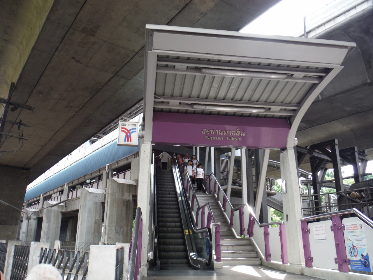 王宮やワットポーに行くフェリー(チャオプラヤー・エクスプレス・ボート)乗り場に一番近いBTSの駅です。駅まで行けば同じ目的の観光客が大勢いますので、その人たちについていけば かなりの確率でフェリー乗り場まで行けます。