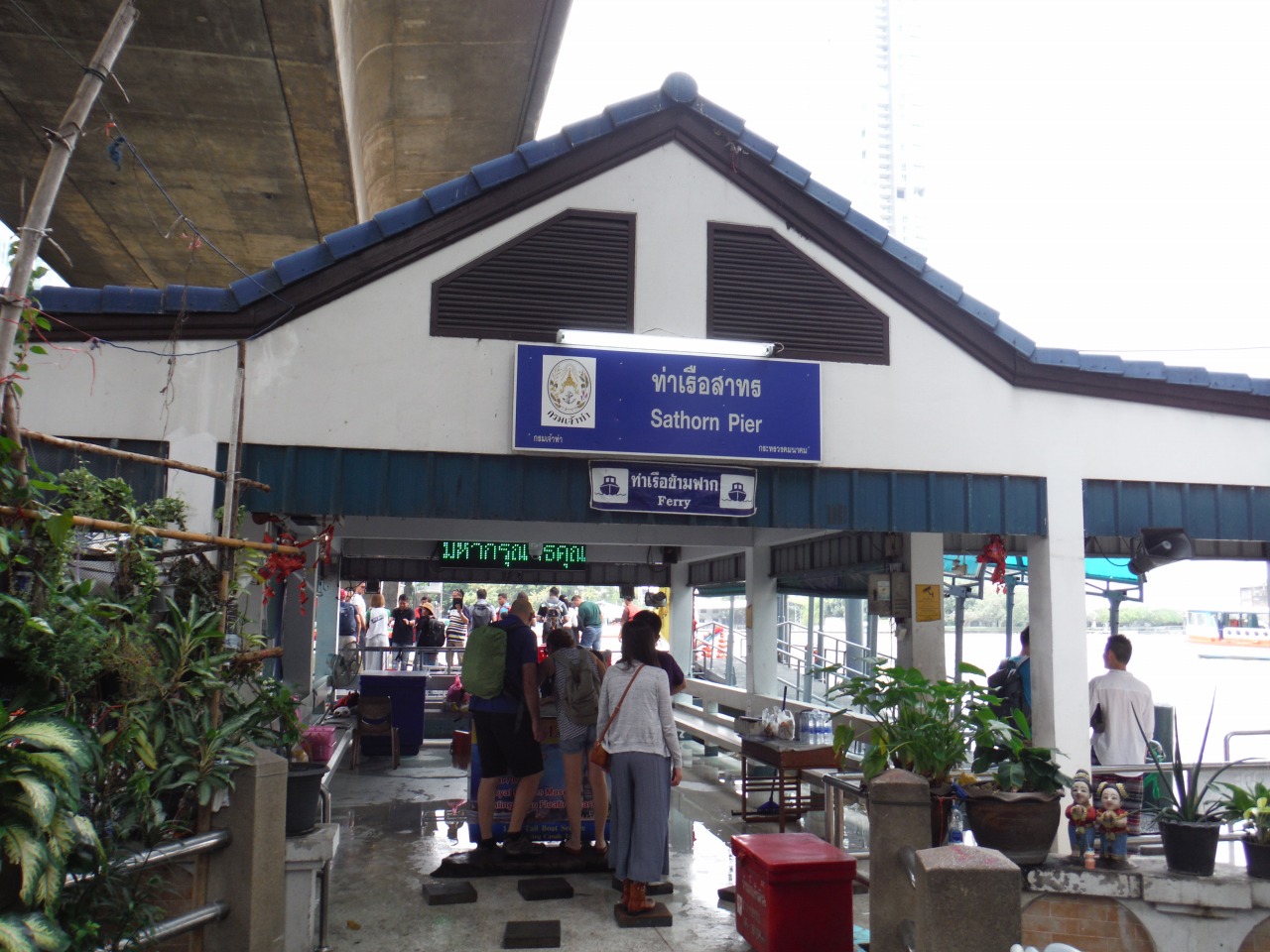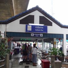 BTSサパーンタクシン駅を降りてすぐの場所にあります。この船着き場からは王宮・ワットポー方面に行く船や逆方向のアジアンティークに行く船、ホテルの送迎ボートなどが出ていて、乗り場がわかれています。係員がいるのでどこに行きたいかを言えば案内してくれます。