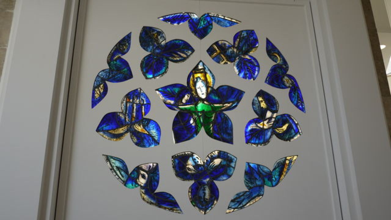 ステンドグラスもあり、これこそさ透き通ったシャガールブルー。
