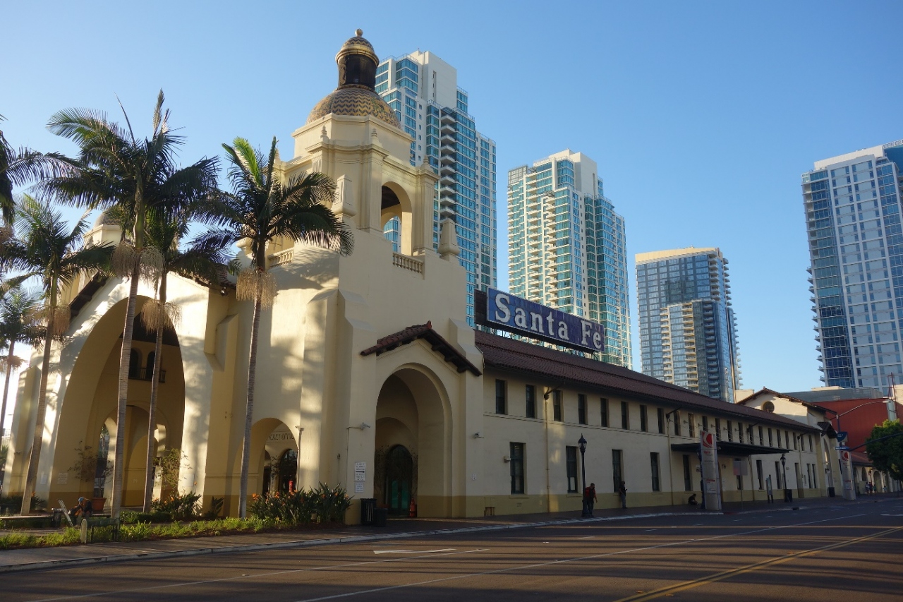 サンディエゴに古くからある歴史ある駅です。ここからアムトラックのサーフライナーなど出発します。駅舎の中もレトロな造りで待合室では柔らかい光のシャンデリアが迎えてくれます。わざわざ早めの時間に行って少し待っていたい気持ちにさえしてくれます。
