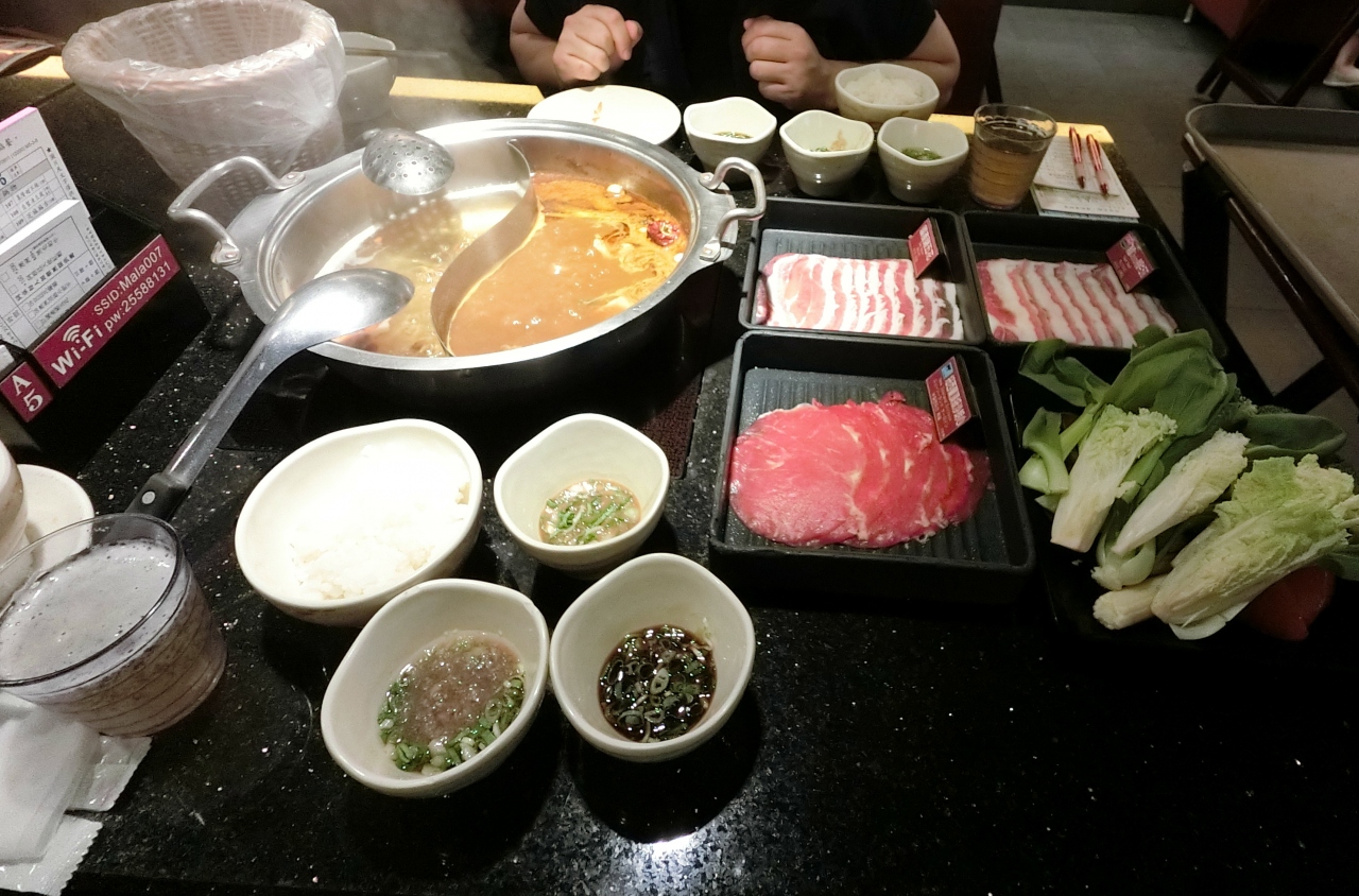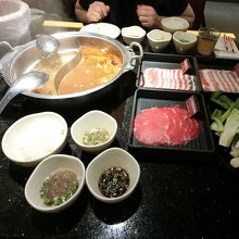 火鍋スープはほんのりとした出汁味なのでタレは醤油とかでベースを作ってから色んなものを混ぜるようです。味を多少濃いめにタレを作った方が美味しいです。