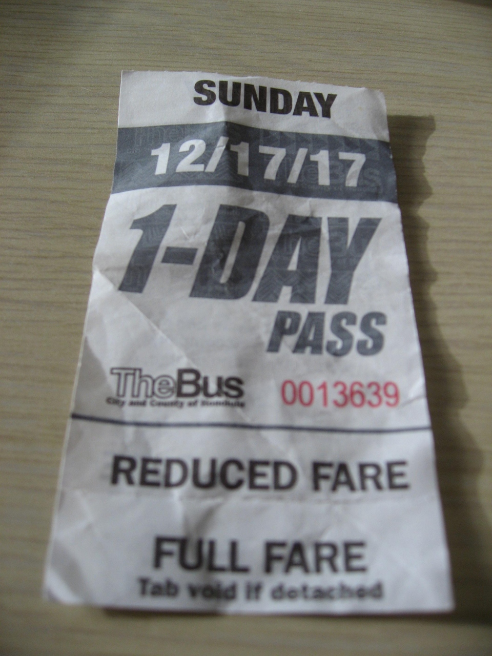 今迄のトランスファーというシステムが無くなって、一回券かワンデイパスを運転手から買います一回券はお金を払ってそれでおしまいですが、ワンデイパスは$5で、一日何度も使えます。気楽に乗り降りできるのでたくさん乗る人には今までよりお得かもしれません。1月には値上げされ$5.5になります。