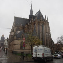 ロワイヤル広場から最高裁判所へ歩いて行く途中にある教会です。ゴシック・フランボワイヤン建築の美しい建物です。垂直性が強く感じられ、上へと向かう感じを強く受けます。ゴシック様式の建築なので、高い天井と大きな壁を覆うステンドグラスが引き立っています。入口(西側)上部のステンドグラスはとても美しいです。