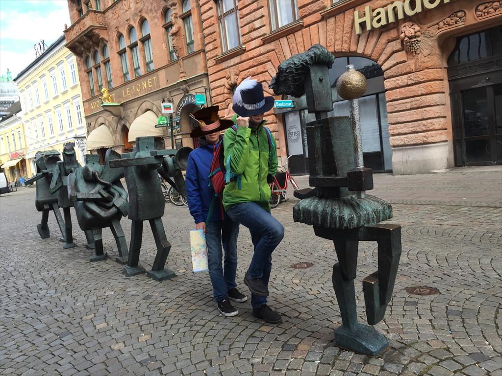 駅から徒歩5分のストートリィ広場の、ちょうどライオン薬局(1571年創業のスェーデン最古の薬局Apoteket Lejonet)の前辺りからグスタフ・アドルフ広場まで続く、歩行者天国のメインストリート。ライオン薬局前にあるブレーメンの音楽隊の像が可愛い。たくさんのお店が並び、可愛い雑貨やお土産物を物色しながらぶらぶら歩くのが楽しいです。