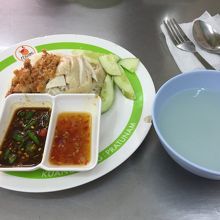 揚げと茹でのハーフを頼みましたが、揚げ鶏は衣が多い印象。茹でだけのシンプルなカオマンガイの方がいいかもしれません。