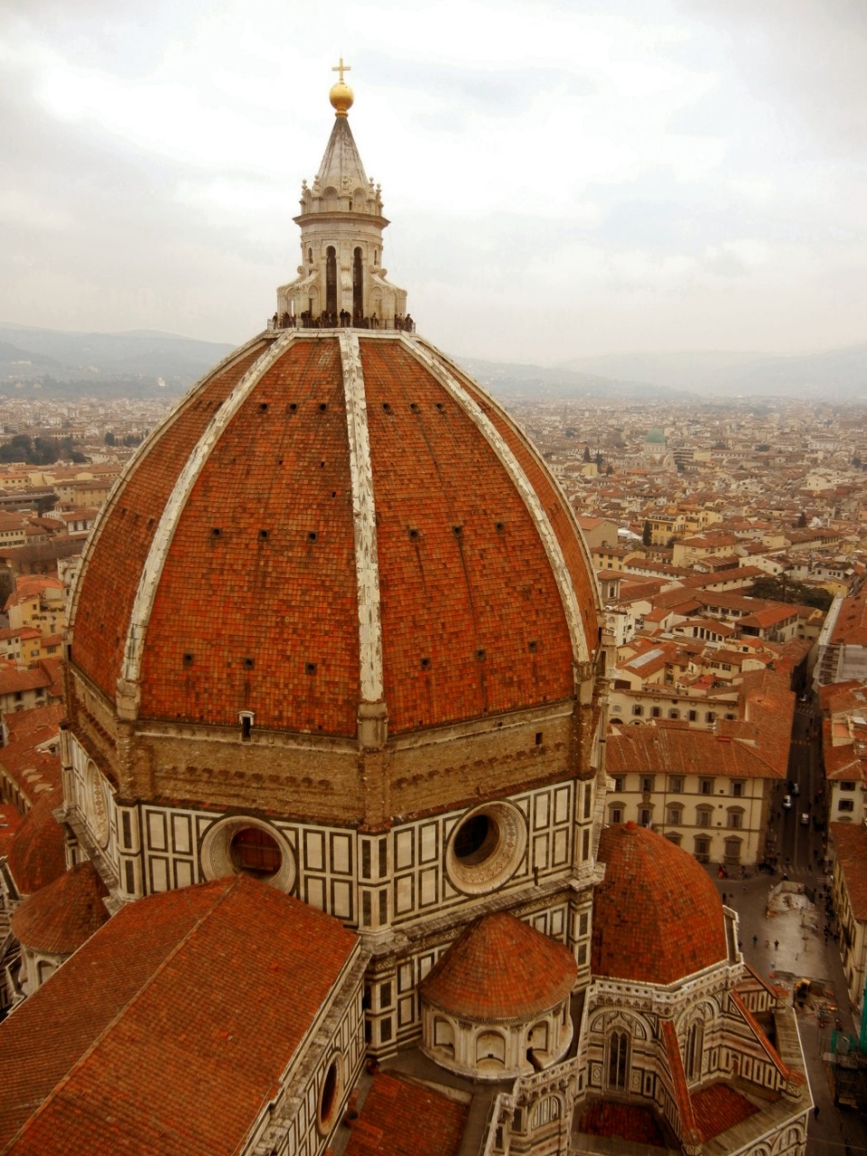 パドヴァのスクロヴェーニ礼拝堂やアッシジのサン・フランチェスコ大聖堂のフレスコ画を描いたとされる画家のジョットが鐘楼建築に携わったため、「ジョットの鐘楼」とも言われる。ドゥオモに先立つ14世紀末の完成。赤・白・緑の大理石で装飾されたゴシック様式で、高さ84m。414段の階段で頂上まで登ることができる。クーポラが間近で見れる景色は圧巻。