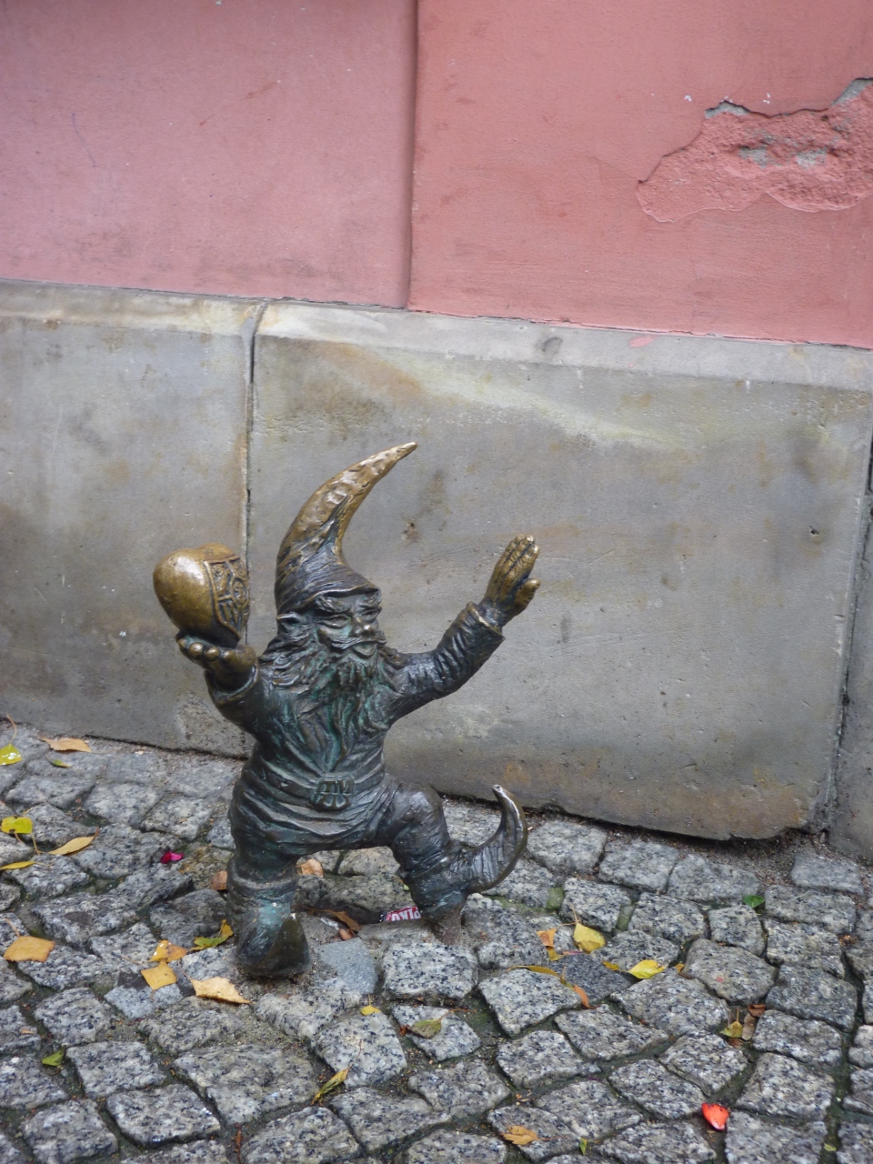 ポーランドの西側にあたりさまざまな文化が入り乱れた地方の中心都市であるが、社会主義から民主化へと開いた町のひとつであるが最近この町が人気が出ているのは町中に民主化に貢献したといわれるシンボルの小人たちの妖精が300体ほど旧市街から大聖堂に向かう途中に見かけられる。さあ皆で探してみよう