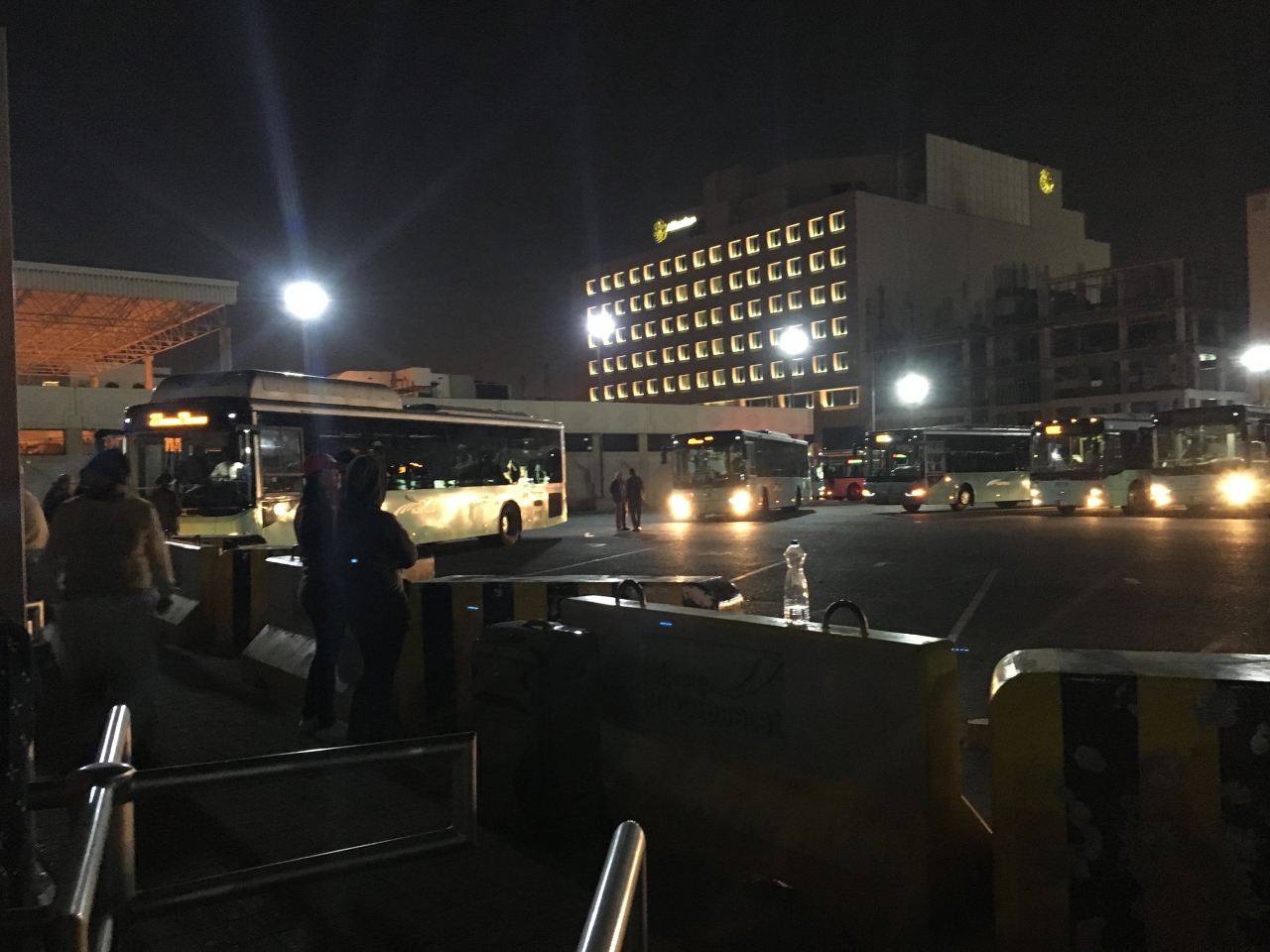 夜遅くまでひっきりなしに行きかうバスに対しバス停の敷地が小さめで、いつも混み合っている印象。また雑多な雰囲気なので、治安の良いカタールの夜ですが、日没後は注意と警戒が必要だと思いました。