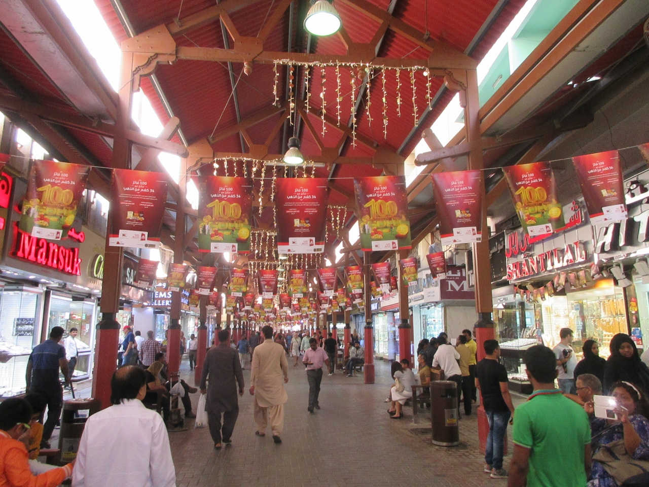 ここは、金がたくさん売られているスークです。金を使った装飾品、首飾り、ブレスレットと様々あります。歩いていると、お店の人も声をかけてくれます。お店の中では、値引き交渉もできます。お店によって、品物値段がちがうので、見比べる必要があります。