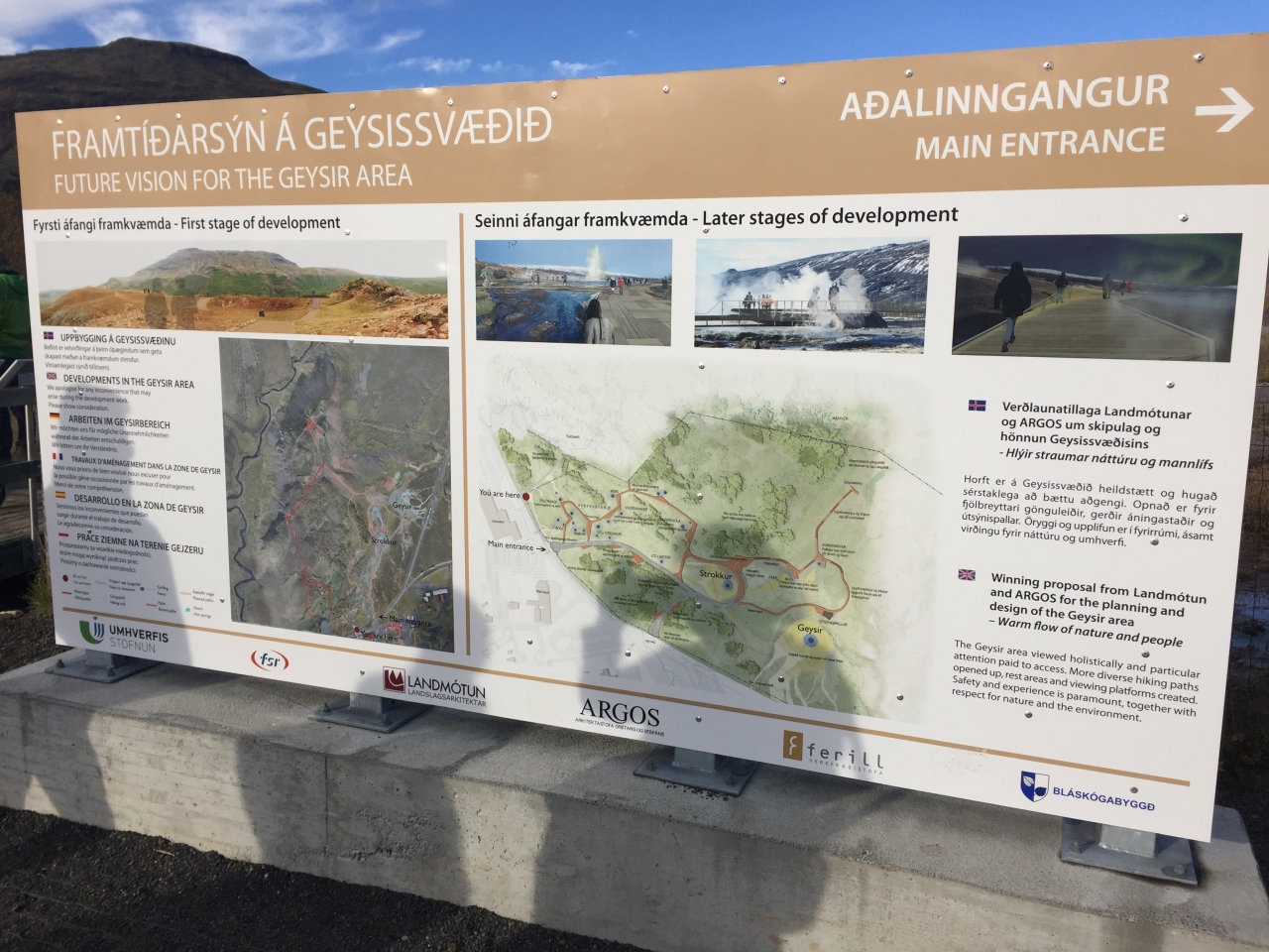 ゴールデンサークルを車で周りました。Thingvellir National Parkから1時間くらい、その後ここからGeysirまでは10分くらいでした。道路を挟んで向かいにホテル、レストラン、無料駐車場あり。