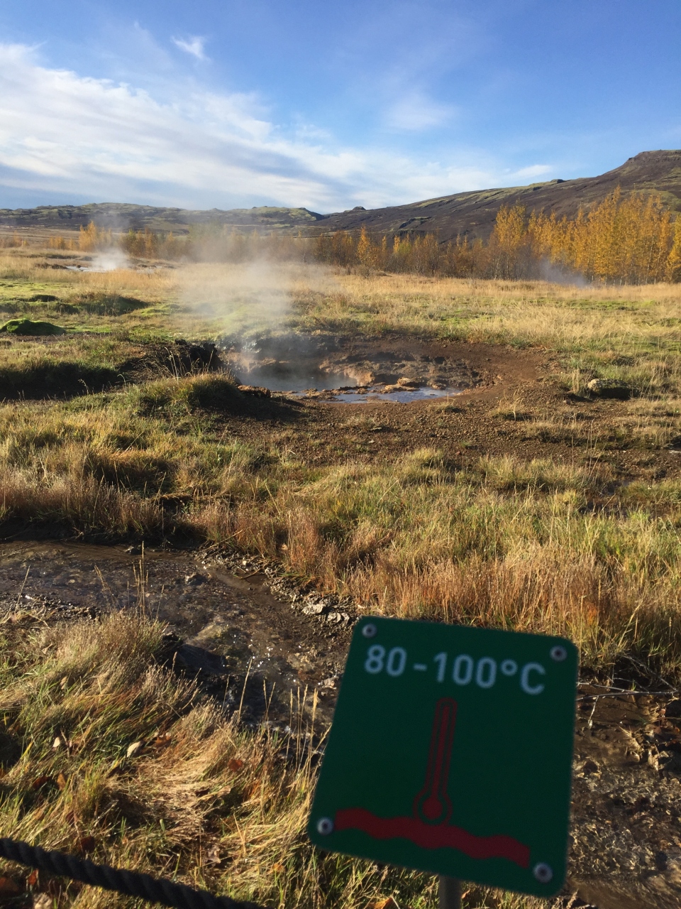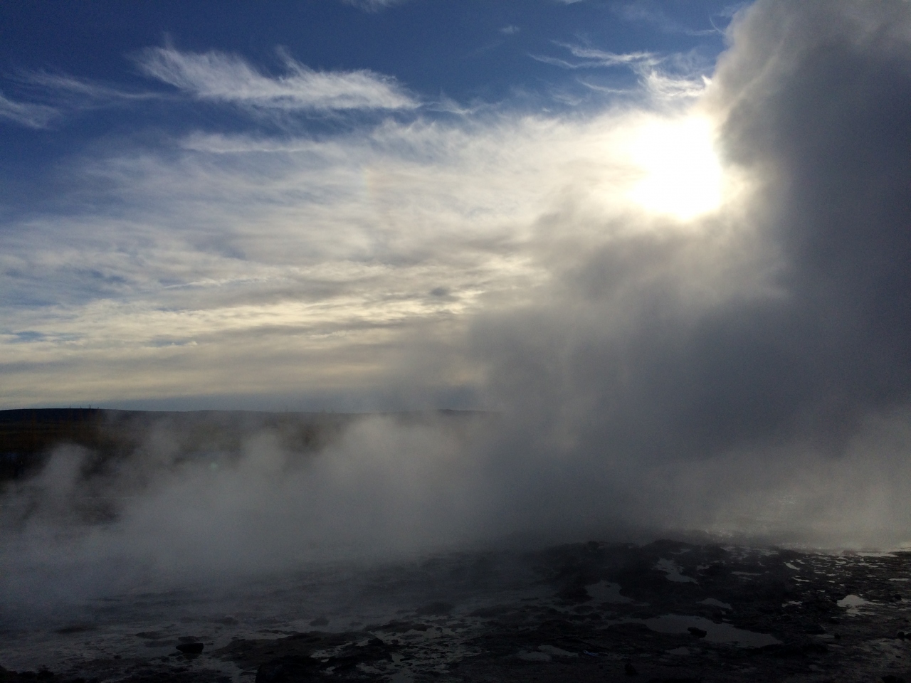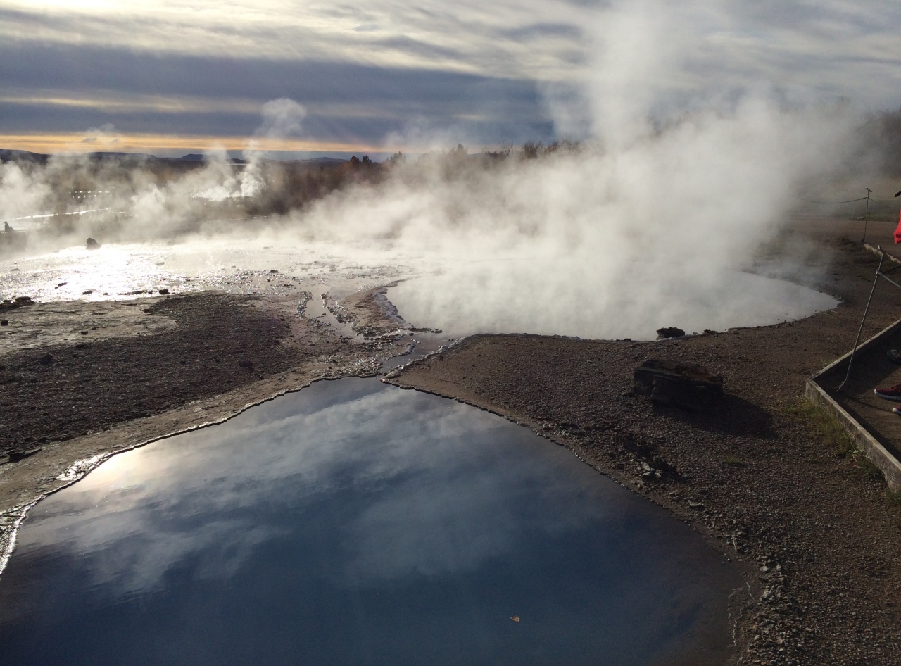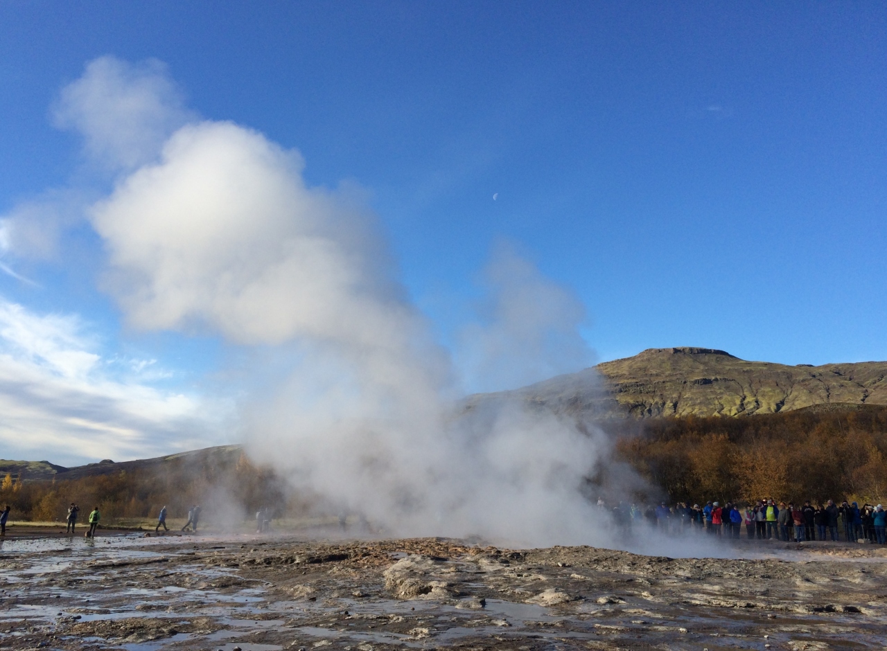 1番大きかったゲイシール間欠泉は現在活動を休止していて、今見られるのはストロックル間欠泉。あちこちから煙がもくもく湧き出しており、ストロックル間欠泉は7-8分おきくらいに噴出していて、「今度こそ、今度こそ写真におさめよう」と構えて待つのですが、毎回見事にビビッてしまって・・・突然穴の水面がもっこり盛り上がり噴き出すので油断できません。期待していなかったのですが、なんだかんだとあっと言うまで1時間ほど滞在しました。面白かったです。