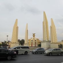 アンコール遺跡を見学しバンコク経由で帰国しましたが時間があったので市街地を散策しました。カオサン通りを東へ大通りが交差するところに「民主記念塔」はありました。