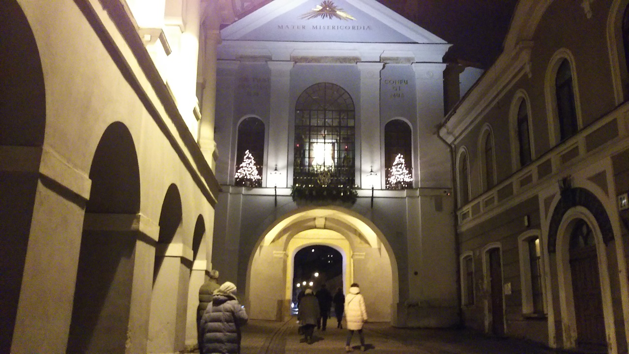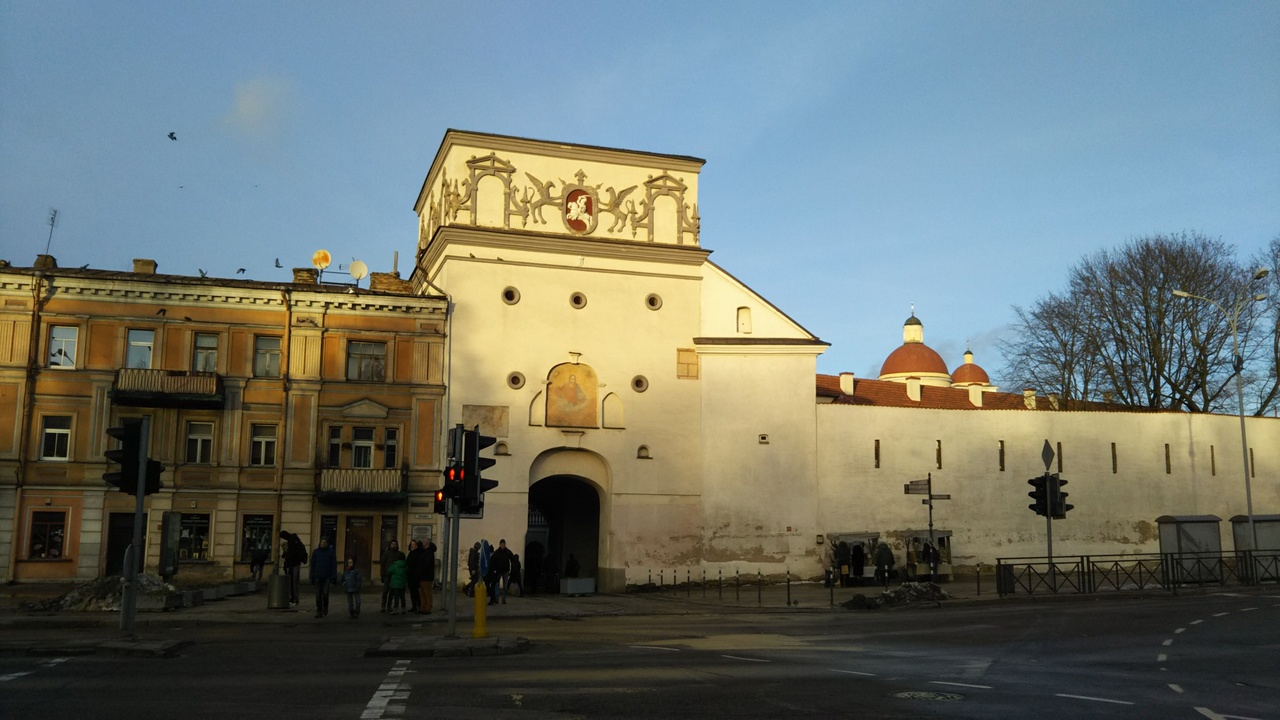 ビリニュス観光のスタート地点です。ここから旧市街の散策が開始される場所で、大聖堂に向かって多くの人が歩いていきます。