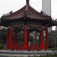 中国風の東屋というところでしょうか。 池があって、休憩所となっているようで、中で休んでいる人がいました。
