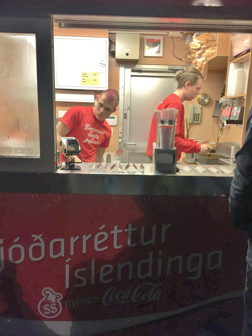 ホットドッグ450kr、ドリンク250kr。1つからでもクレジットカードで払えました。リーズナブルで美味しかったです(宇宙一かどうか?は置いときまして…)。3色のソースが、以前は自分で選んでかけられたようですが、今はなにも言わなければかけて渡されるようです。ダンナと息子は「黄色いソースがない方がいい」と言っていましたが…私は気に入ってもう1度食べに行ってしまいました!