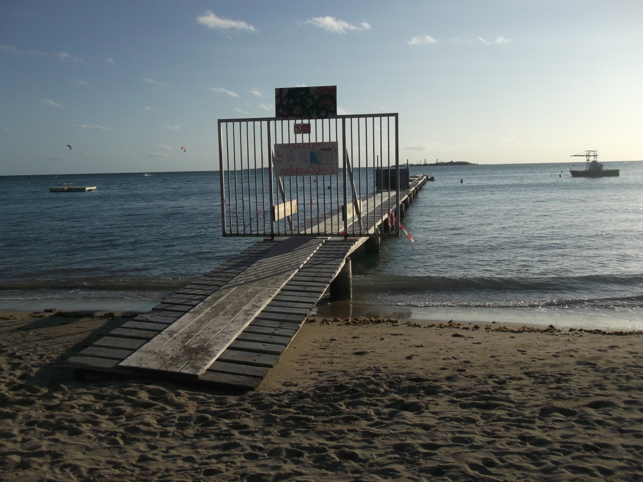アンスバタビーチの南側にこの桟橋がありました。かなり海の先のほうまで飛び出ているので、そこまで行ければかなり眺めもよさそうでしたが、残念ながら写真のように立ち入りできないようになっていました。確かにかなり傷んでいる感じはありました。