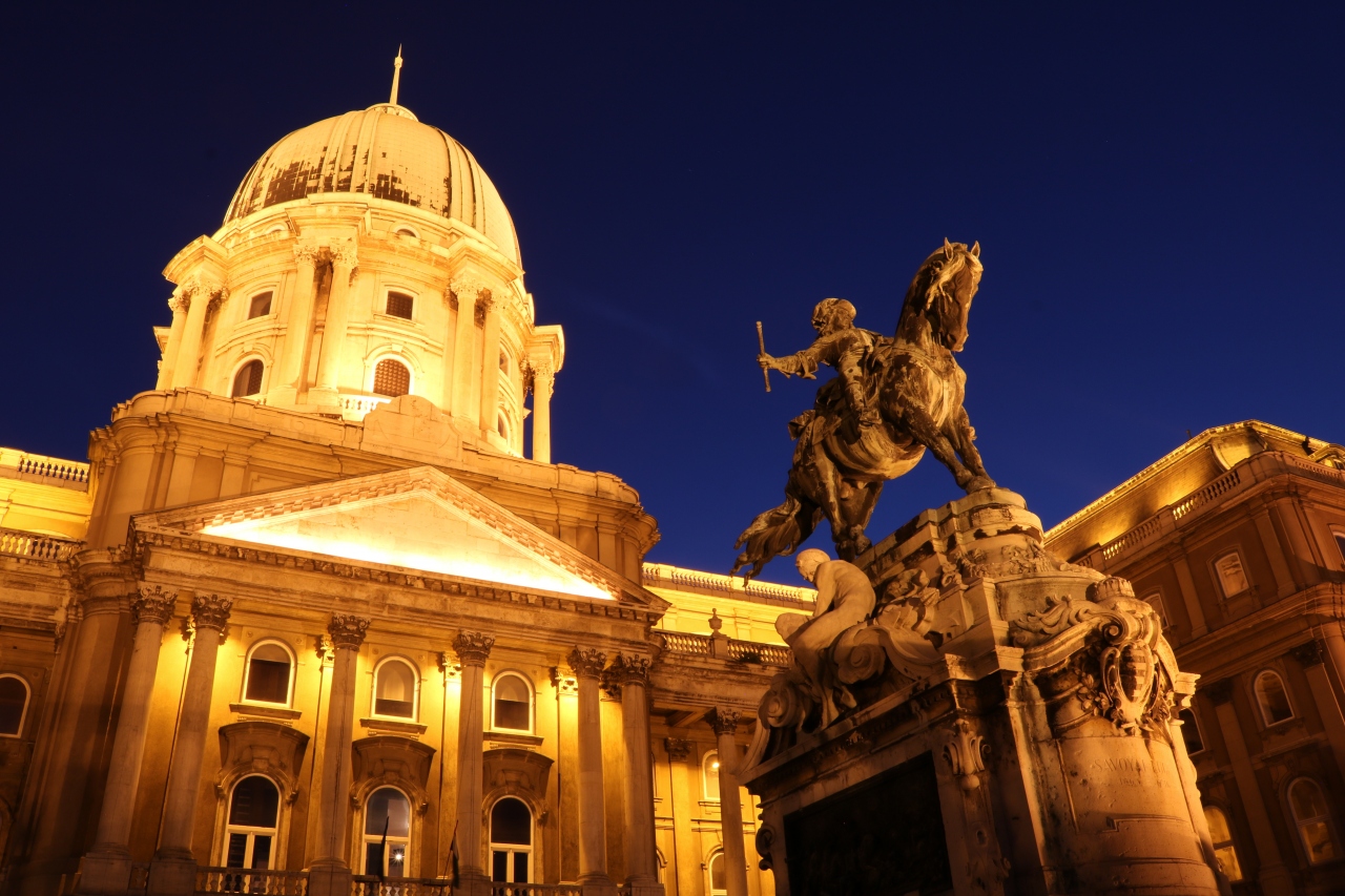ブダ王宮のテラスにたつ騎馬像。立地的にも有名な王なのかと思いきや、家臣なのですね。このオイゲン公の像の前のテラスから見たドナウ川沿いの景色が絶景です。セーチェニ鎖橋と国会議事堂を一度に眺めることができます。
