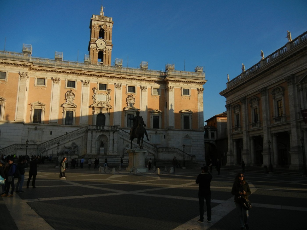 古代ローマ時代にあった七つの丘の一つ、カピトリーノ丘の上に整備された広場。かつてユピテル・ユノー・ミネルヴァの神殿があったと言われる。カンピドーリオ広場は、16世紀にミケランジェロによって整備された。市庁舎・カピトリーノ美術館・コンセルバトーリ宮殿、下った所にビットリオ・エマヌエレ2世記念堂がある。広場の中央には、ローマ五賢帝・マルクス・アウレリウスの騎馬像(レプリカ)が立っている。裏手に回れば無料でフォロ・ロマーノの遠景が見える。(カピトリーノ美術館の地下通路から眺めた方が、よりダイナミック)