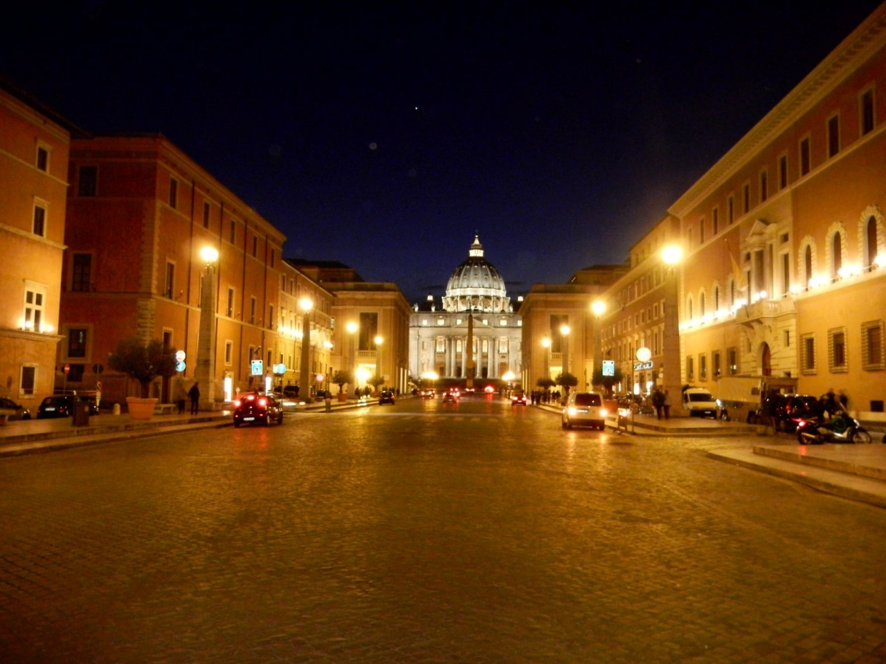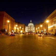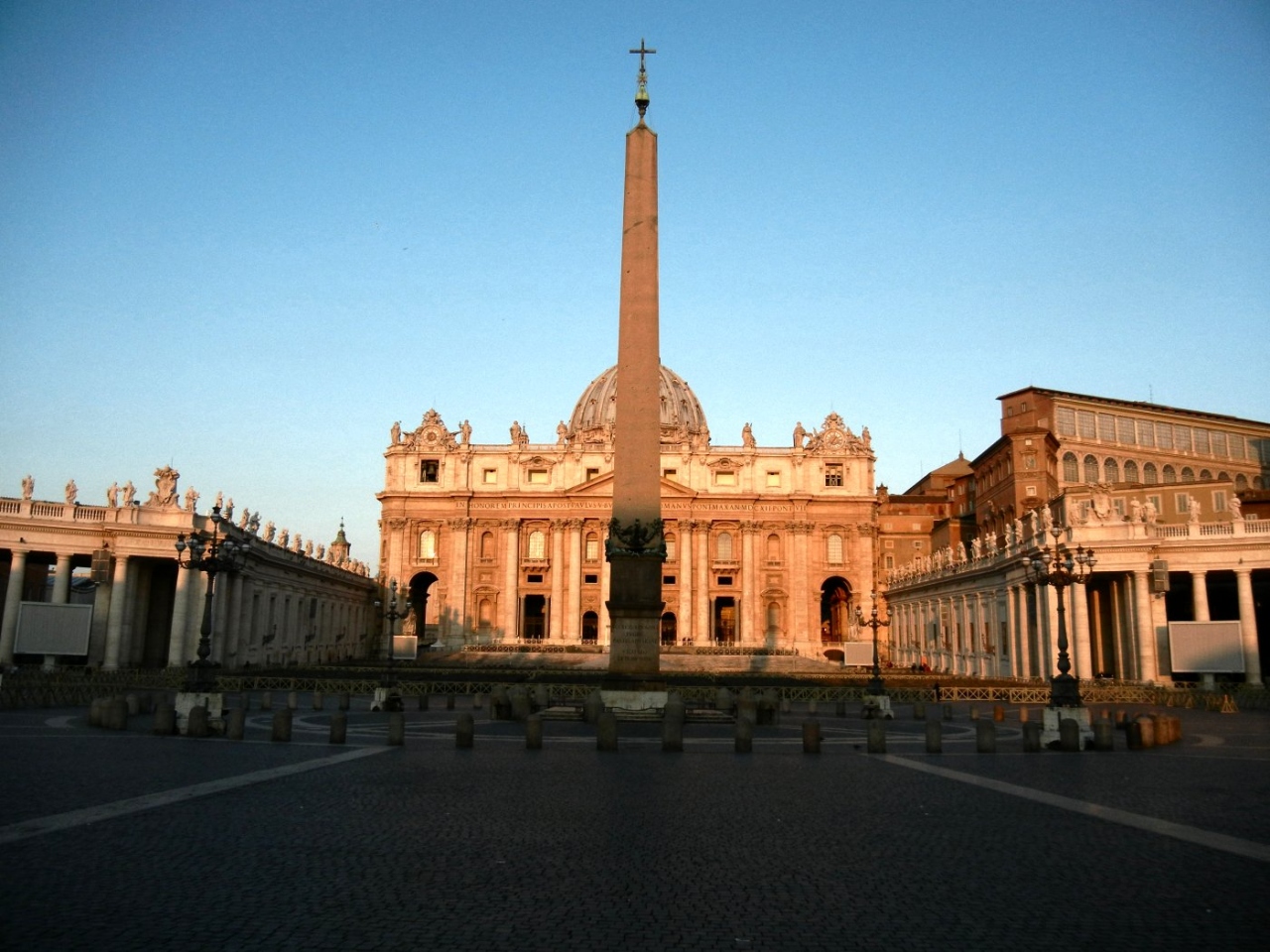 サン・ピエトロ広場は、サン・ピエトロ大聖堂の正面にある径240mに及ぶ楕円形の広場。バロック建築の巨匠・ベルニーニの設計。広場の中央に建つオベリスクは、もともとは1世紀にローマ皇帝・カリグラが建設した競技場の装飾品として、エジプトからもたらされたものである。広場は4列の列柱廊で囲まれ、楕円の焦点は通称「ベルニーニ・ポイント」と呼ばれ、すべての柱が1列に見えるように造られている。マークがあるから探せばすぐ見つかる。